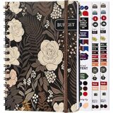 مخطط الميزانية ومنظم الفواتير الشهرية - كتاب ميزانية منظم المخطط المالي مع أوراق الملصقات - دفتر تعقب الفواتير | كتاب الميزانية مع تتبع الديون والادخار والنفقات - A5