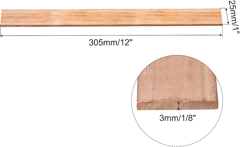 • سوف تحصل على: قضبان مسطحة من النحاس × قطعتين؛ المادة: نحاس T2؛ الحجم: 12 بوصة × 1 بوصة؛ السُمك: 1/8 بوصة؛