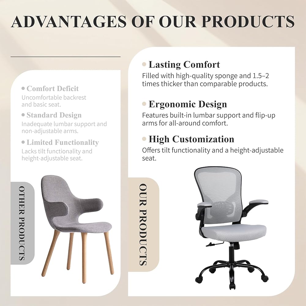 كرسي مكتب تنفيذي مريح: كرسي المكتب المريح هذا يضفي طابعًا إنسانيًا على مسند الظهر ودعم أسفل الظهر، مما يجعل الظهر أقرب إلى المنحنى الطبيعي، بحيث يكون العمود الفقري خاليًا من الألم. يساعدك على الحفاظ على وضعية مريحة خلال ساعات العمل الطويلة. أسهل لتفريق التوتر وتخفيف تعب العضلات.