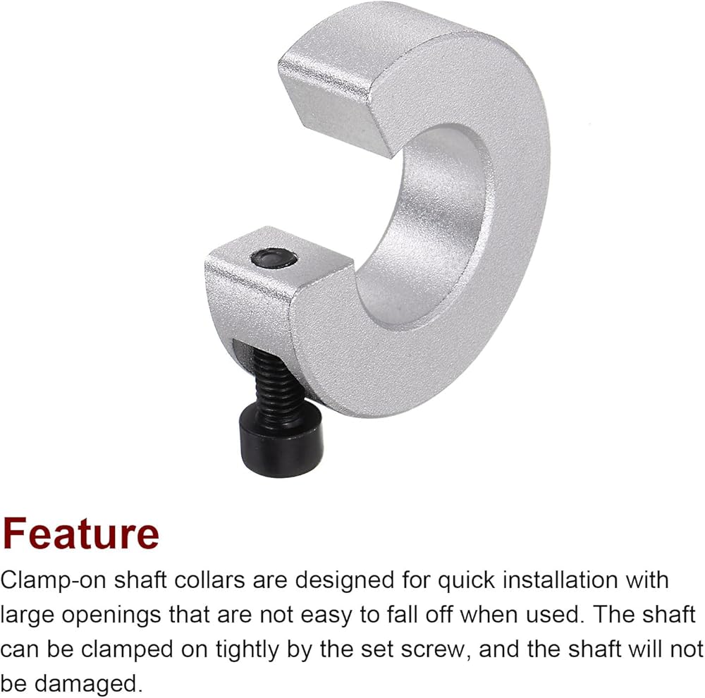 Feature - Clamp-on shaft collars are designed for quick installation with large openings that are not easy to fall off when used. The shaft can be clamped on tightly by the set screw, and the shaft will not be damaged.