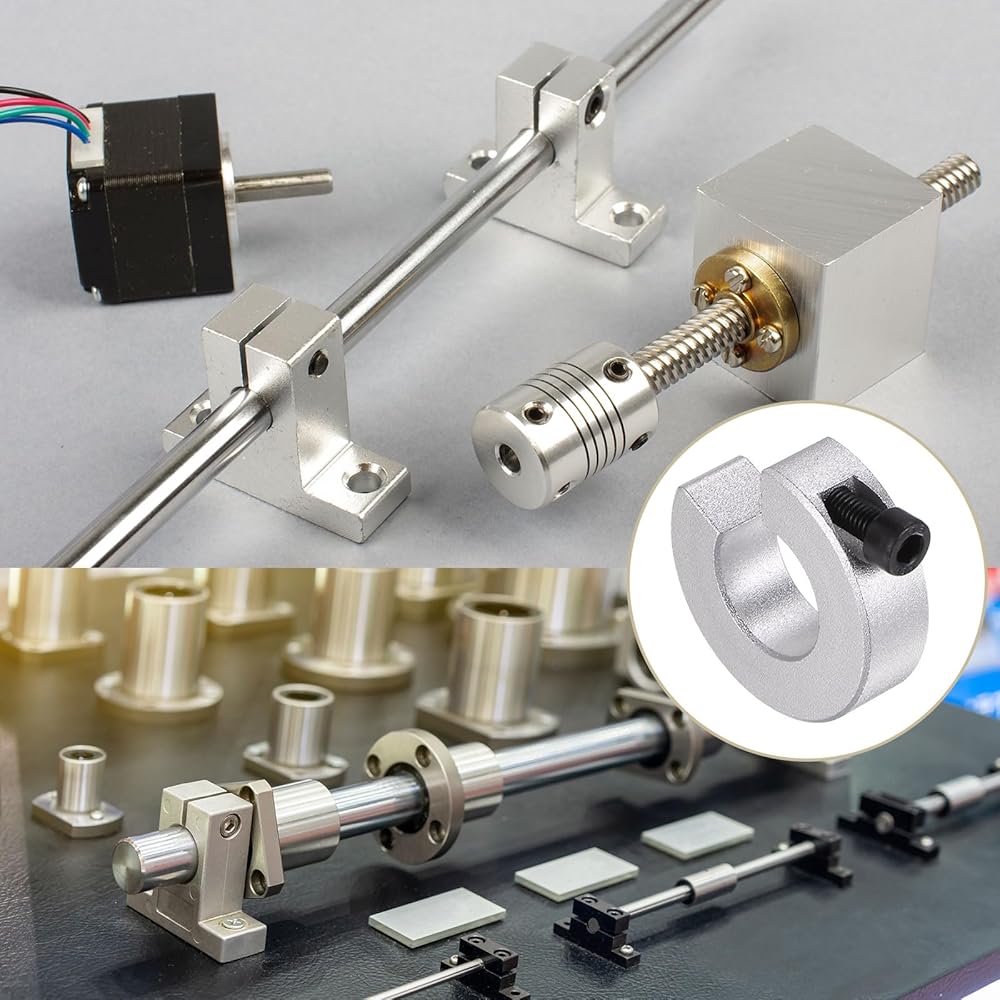 Usage - Simply slide these collars onto a shaft and tighten the set screw to hold the collar in place. Collars are easy to adjust with their set screws. Effective on hard and soft shafts.