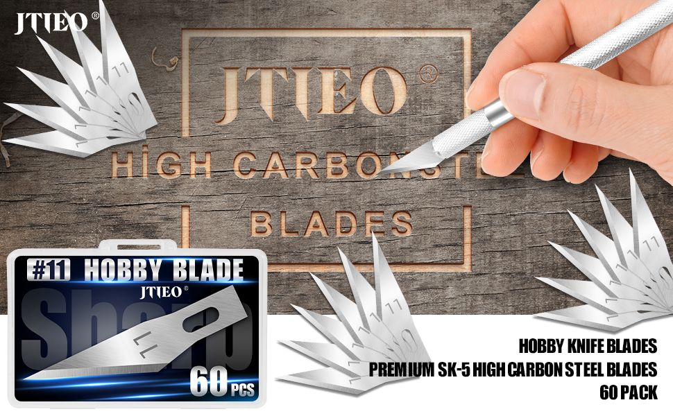 JTIEO 60 قطعة من شفرات السكاكين الدقيقة المصنوعة من الفولاذ الكربوني العالي #11 شفرات سكاكين هواية بديلة تعمل على إعادة ملء الشفرات الفنية مع حقيبة تخزين شفرة Exacto للفنون والحرف اليدوية وسجلات القصاصات والاستنسل