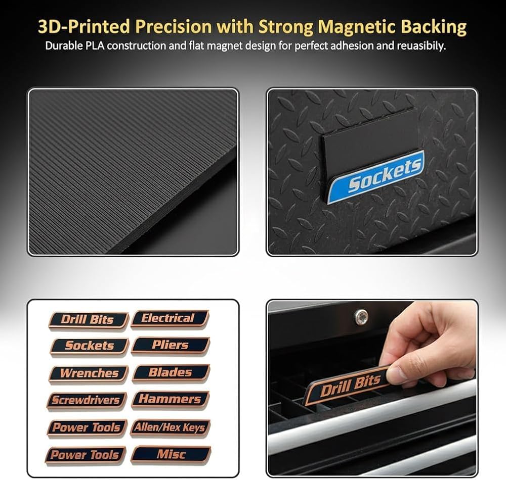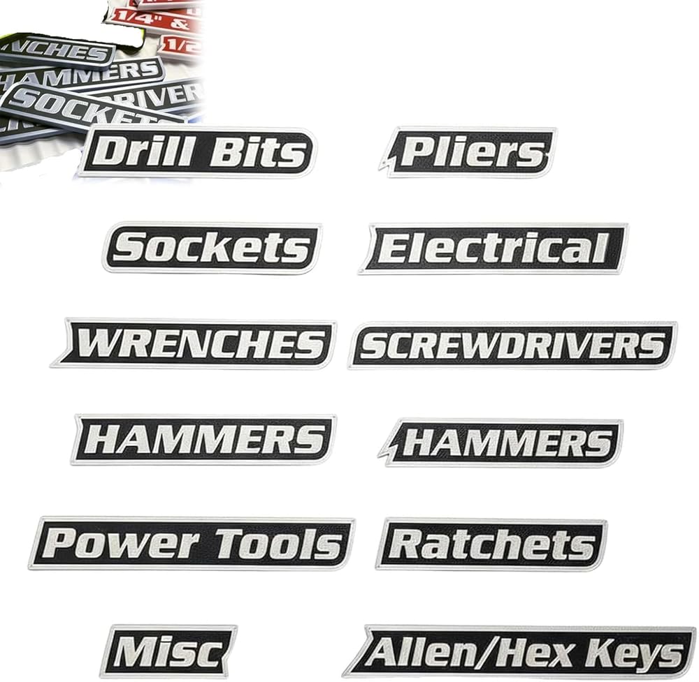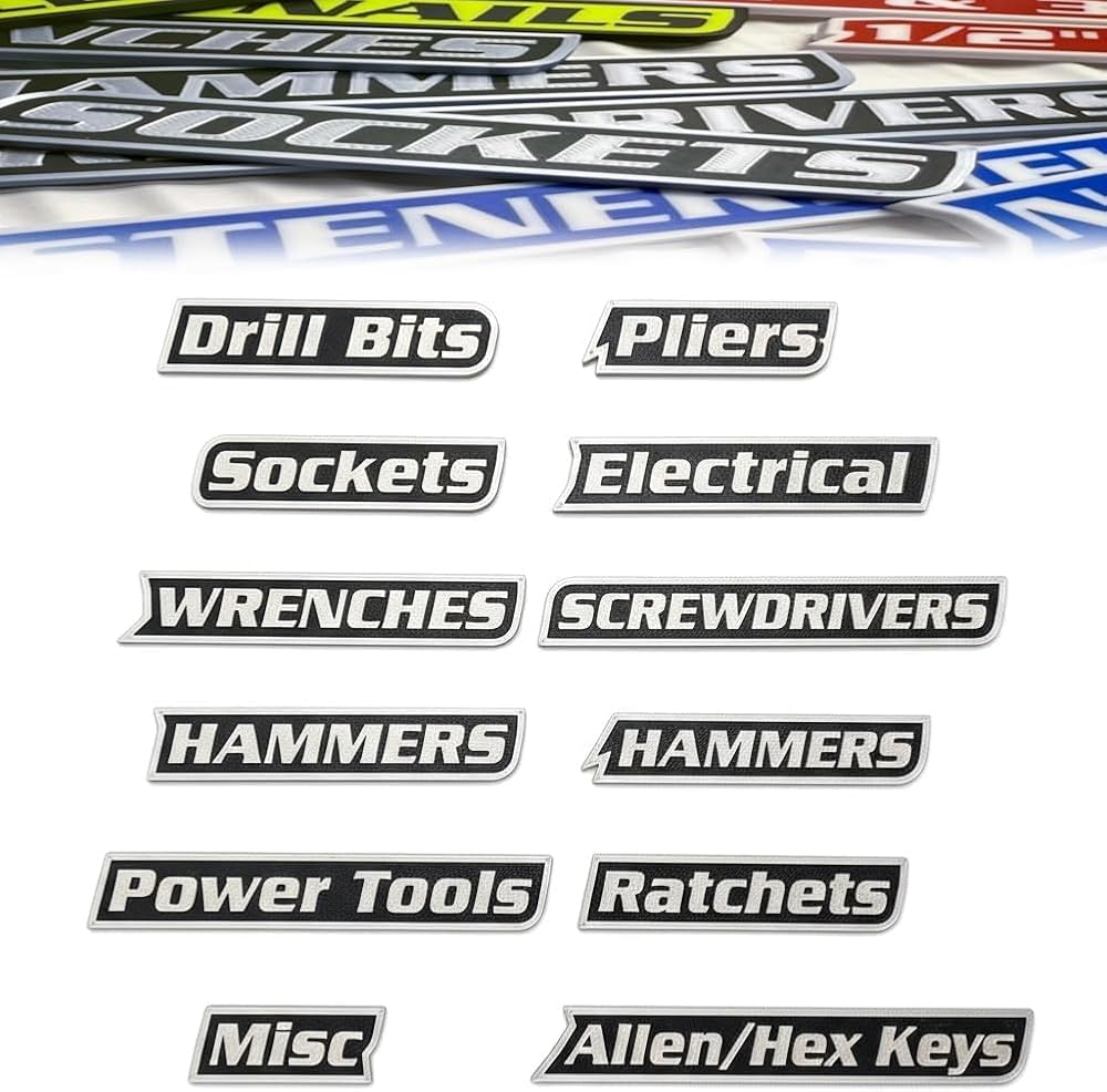 تطبيق متعدد الاستخدامات: مثالية للإعدادات المختلفة، يمكن استخدام هذه الملصقات على عربات الفولاذ والأدراج والخزائن وحتى صناديق الأدوات، مما يضمن تنظيم جميع الملحقات الخاصة بك مثل رؤوس المثقاب والمقابس والكماشة والمفاتيح والمزيد بشكل أنيق.