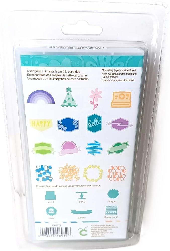 You'll love how fast and easy it is to cut embellishments, cards, 3-D flowers, gift boxes, and more with the touch of a button. Simply insert the cartridge into your Cricut machine (sold at retail stores), add your paper, and presto!—perfectly cut shapes appear. 1 – Cartridge (700 Images: Shapes, Layers, Banners, Borders, Backgrounds, and Font) 3 – My Acrylix D-size Stamp Sets* 1 – Enchantment Cardstock Combo Pack