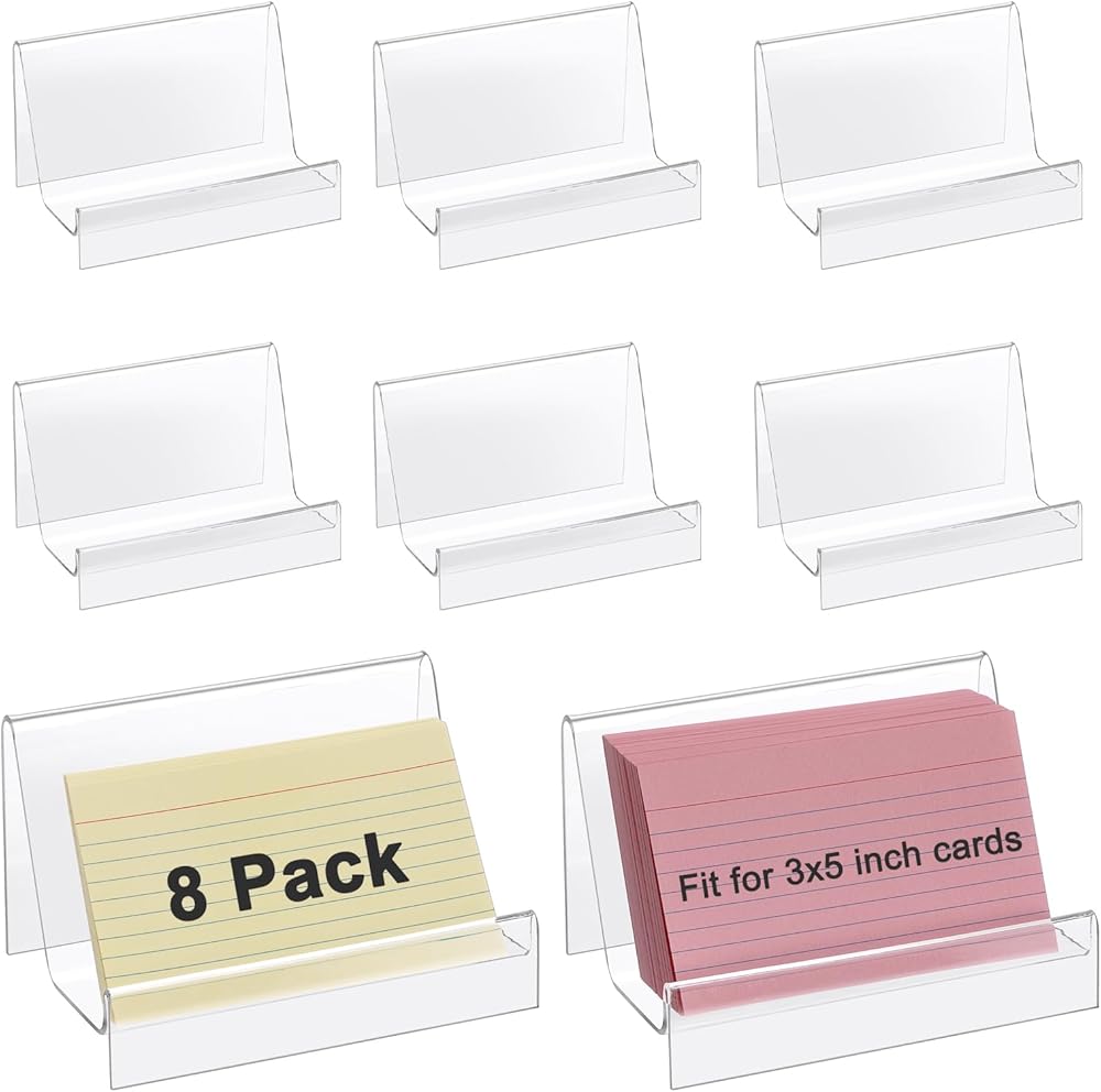 BTSKY 8 قطع حامل بطاقات مؤشر مقاس 3 × 5 بوصة - حامل تخزين بطاقات مؤشر من الأكريليك الشفاف، منظمات بطاقات ملاحظات قابلة للتكديس للبطاقات البريدية والصور وتخزين بطاقات التهنئة - حامل وصفات بلاستيكي للمكتب والمطبخ