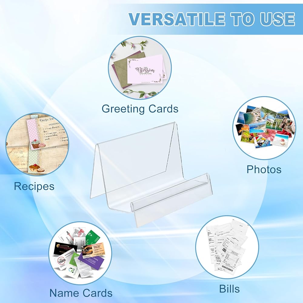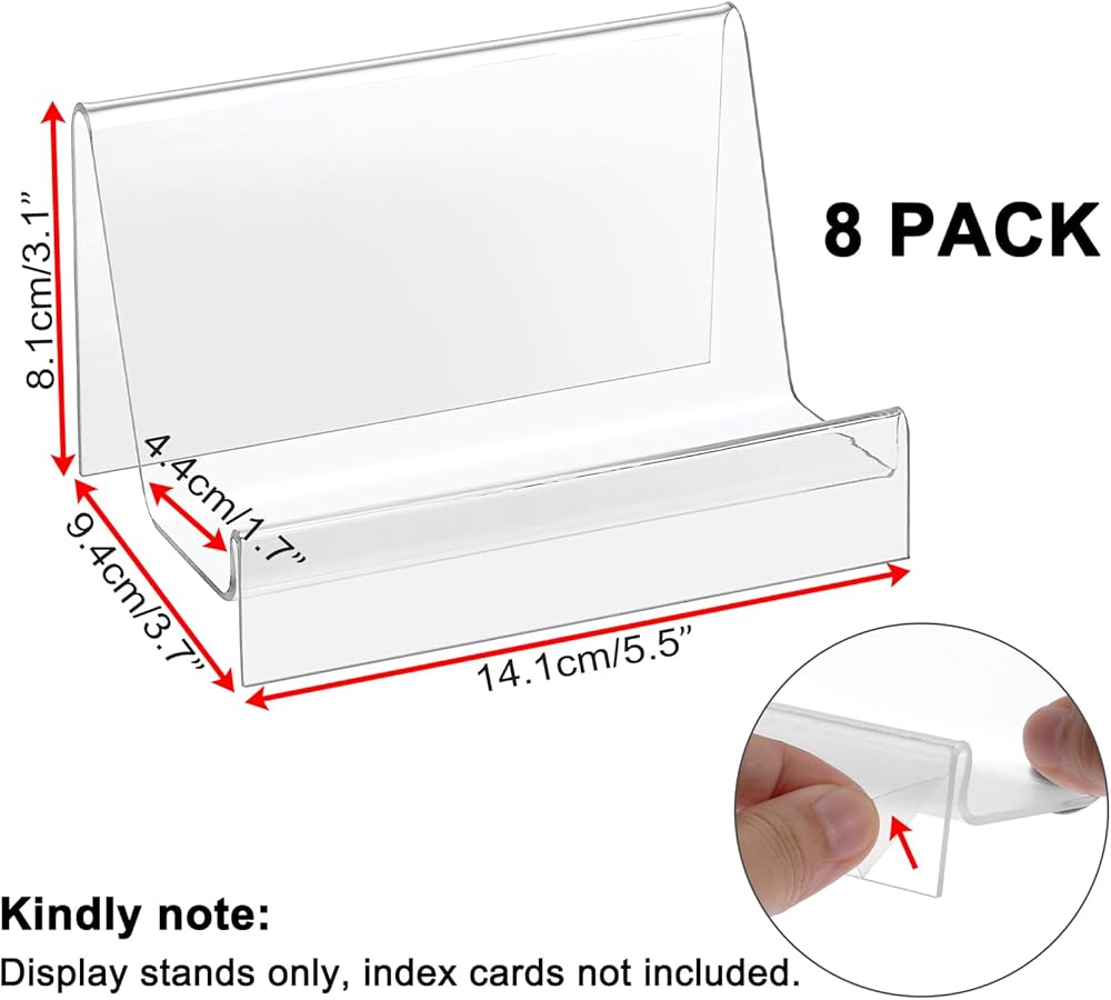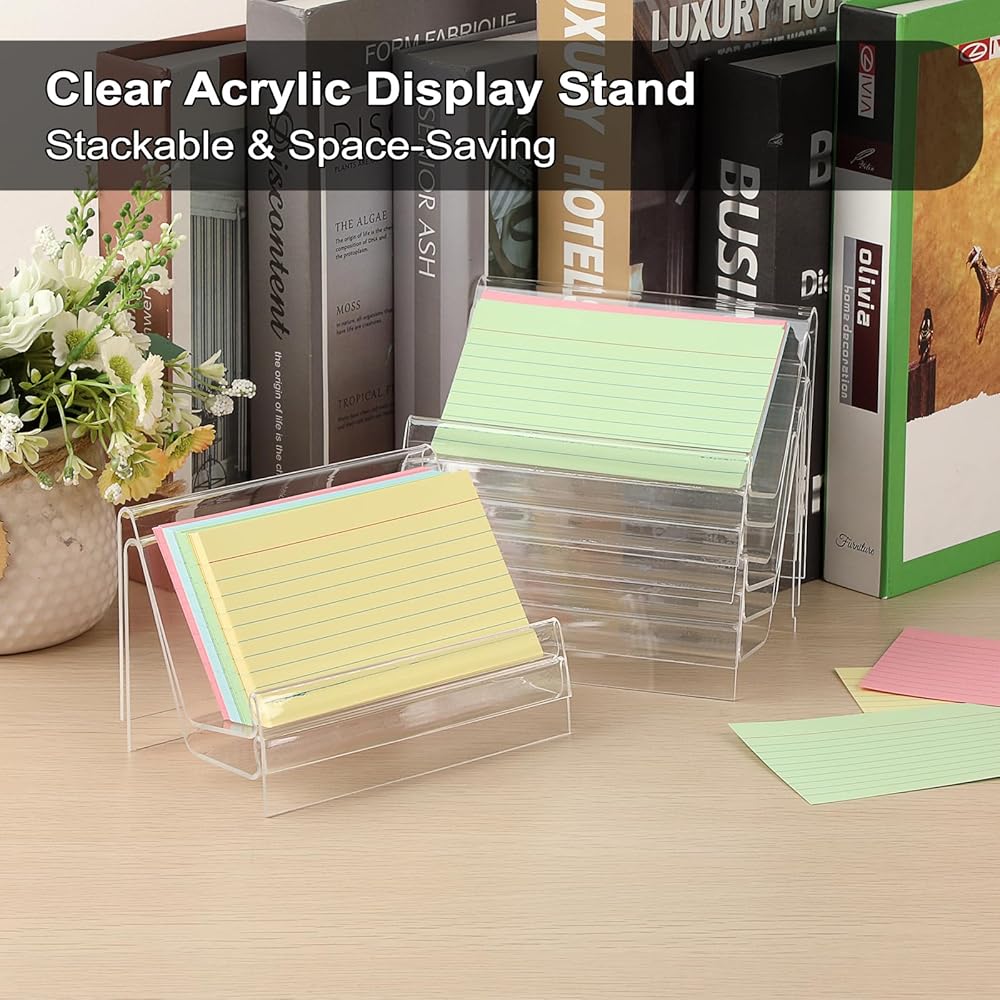 • مادة متينة: مصنوع من الأكريليك الشفاف عالي الجودة، يتميز حامل بطاقة الفهرس هذا بسطح شفاف بشكل استثنائي. يضمن تصميمها القوي بقاء بطاقاتك معروضة بشكل آمن بينما يحافظ الحامل على مظهره الأصلي مع مرور الوقت. (يرجى ملاحظة: يوجد طبقة واقية على السطح. يرجى تمزيقها قبل استخدام الحامل.)