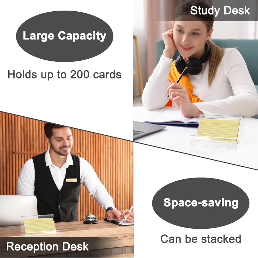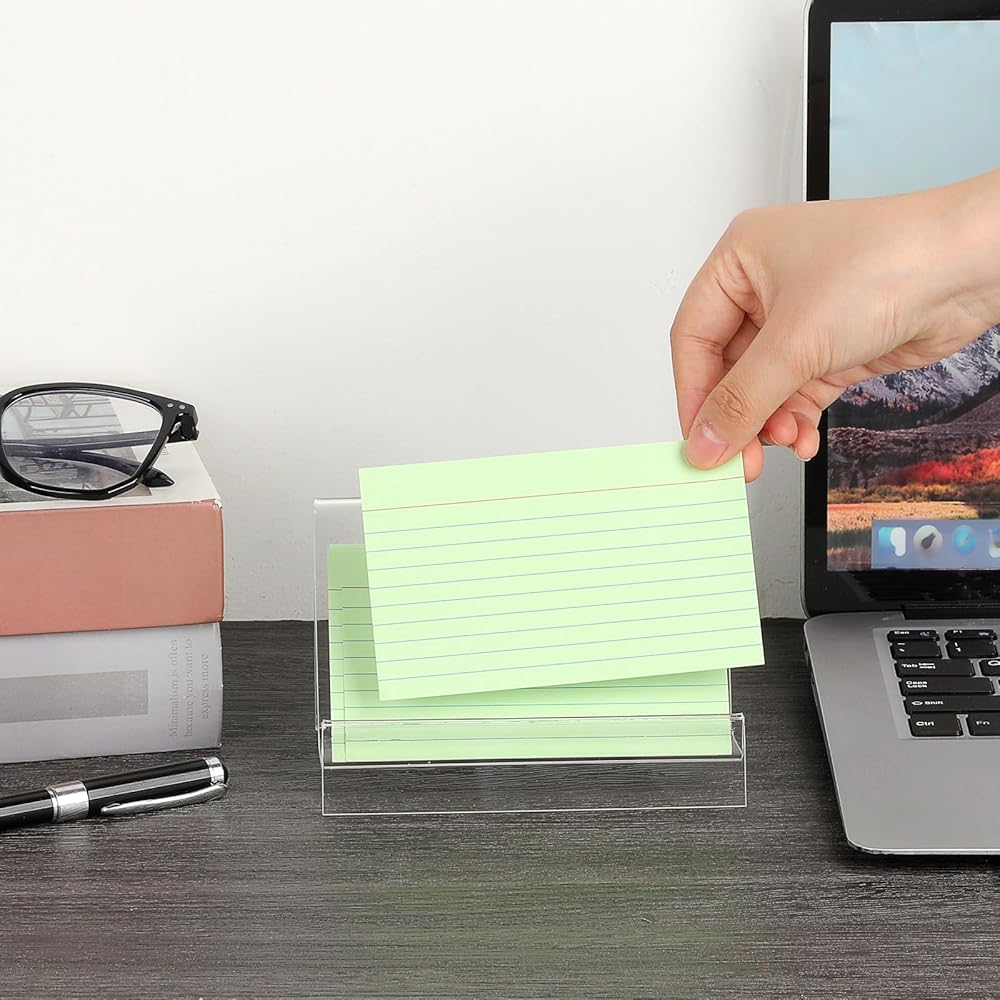• سهل الصيانة: سطح الأكريليك الناعم سهل التنظيف - ببساطة امسحه بقطعة قماش ناعمة ورطبة لاستعادة مظهره الشفاف تمامًا. يضمن منظم بطاقة الفهرس منخفض الصيانة أن تظل مساحة العمل الخاصة بك مرتبة واحترافية بأقل جهد.
