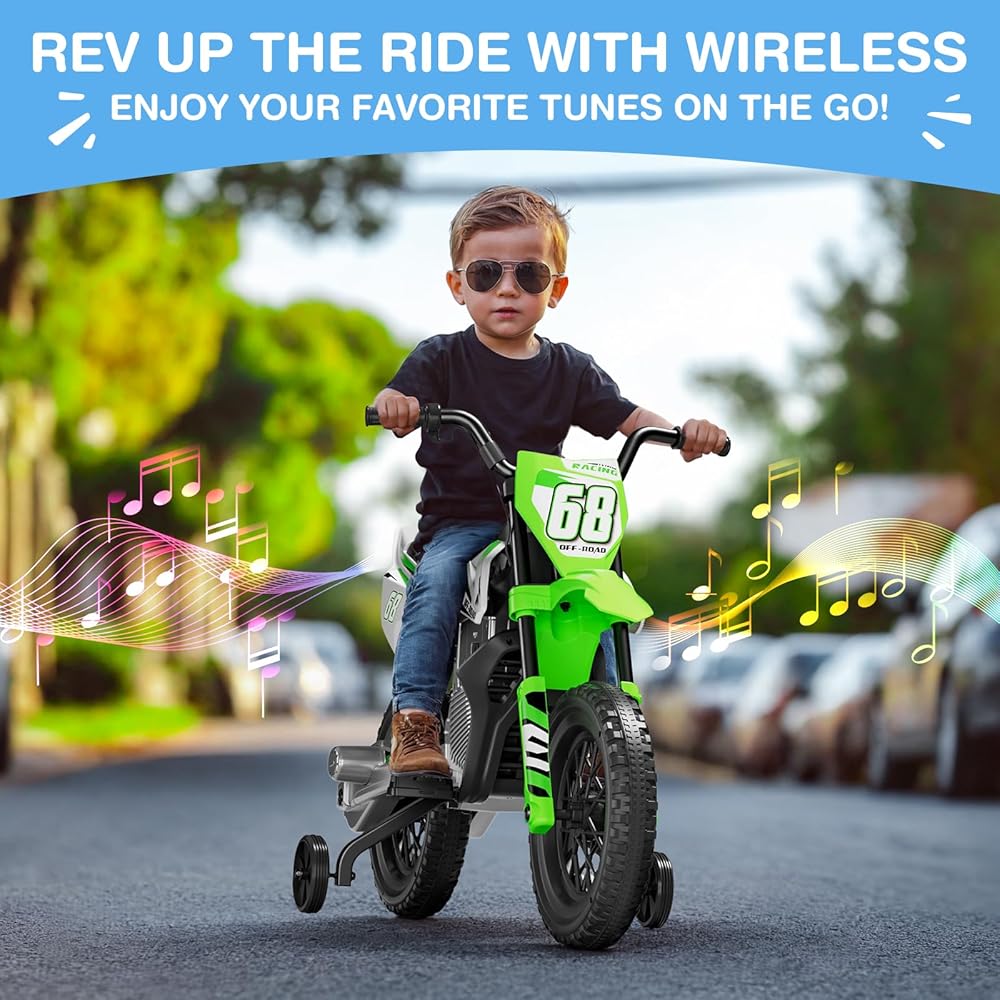 استمتع بمتعة الوسائط المتعددة: تتميز هذه الدراجة النارية الكهربائية باتصال لاسلكي، وتسمح لك بالاقتران مع أي لاعب لبث الموسيقى والقصص المفضلة لديك وغير ذلك الكثير. بالإضافة إلى ذلك، فهي تتضمن مجموعة مختارة من المسارات المعدة مسبقًا لتعزيز متعة ركوب الأطفال.