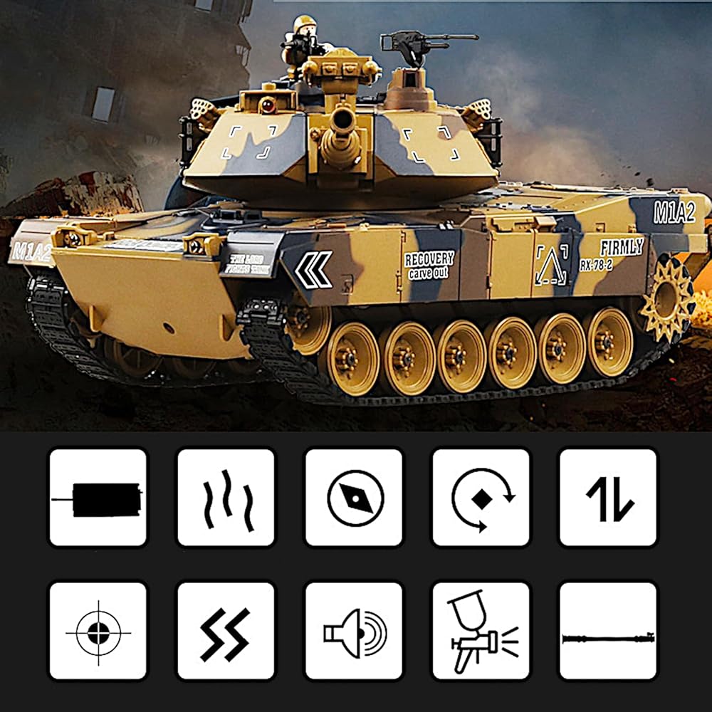 • Replica Model of US Army M1A2 Abrams Main Battle Tank at 1/18 Scale with vibrating controller; Airsoft battle system can shoot both 6mm BBs & water bullets; Please wear goggles on when playing airsoft function; Never try to look into the gun muzzle