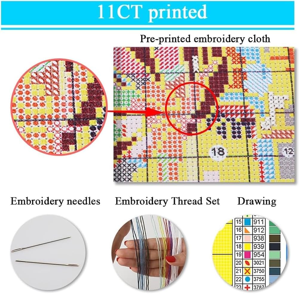 Introducing our premium 11ct Cross Stitch Kit, designed to ignite your creativity and provide a fulfilling stitching experience. Crafted with utmost care and attention to detail, our 11ct Cross Stitch Kit boasts exceptional quality. Each kit includes a precisely printed 11ct fabric with clearly marked grid lines, making it easy to follow the pattern and create beautiful, intricate designs. Whether you prefer floral motifs, scenic landscapes, or adorable animals, we have an extensive collection of designs to suit every taste. Unleash your artistic prowess and bring these exquisite designs to life with the included set of premium needles, which glide smoothly through the fabric, ensuring a seamless stitching experience. Once completed, your masterpiece can be proudly displayed in your home. You can choose frame stamped cross stitch kit to decorative wall, or use it as a unique craft, you can be confident that your finished 11ct Cross Stitch will add a touch of elegance and charm to any space. Embark on a creative journey that relieves stress and offers a sense of accomplishment. 1. Select an 11CT fabric and matching cross stitch threads. 2. Follow the clearly marked grid lines on the fabric, corresponding to the pattern. 3. Thread the needle with two strands of cross stitch thread. 4. Use the pattern symbols and color codes to guide your stitching. 5. Create each stitch by forming a diagonal line from one corner of the square to the opposite corner, then cross it with a second diagonal stitch. 6. Repeat the stitching process, filling in each square with the appropriate color, until the entire pattern is complete. With these simple steps, you can create stunning and intricate designs using 11CT Cross Stitch kit. Enjoy the rewarding process of bringing the pattern to life.