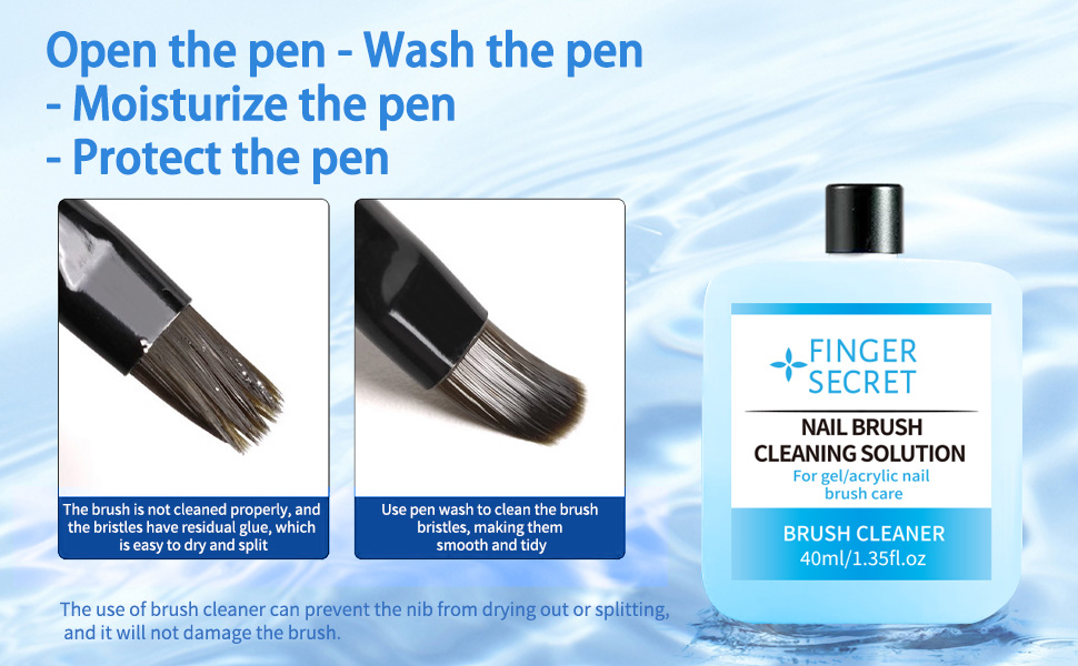 الاستعداد لفن الأظافر: حافظي على فرش أظافرك في حالة جيدة مع منظف فرشاة الأظافر فينجر سيكريت. يمكن أن يتراكم منظف فرشاة الأظافر هذا ويترك بقايا، مما يترك فرشك نظيفة وجاهزة لإبداعك الفني التالي.