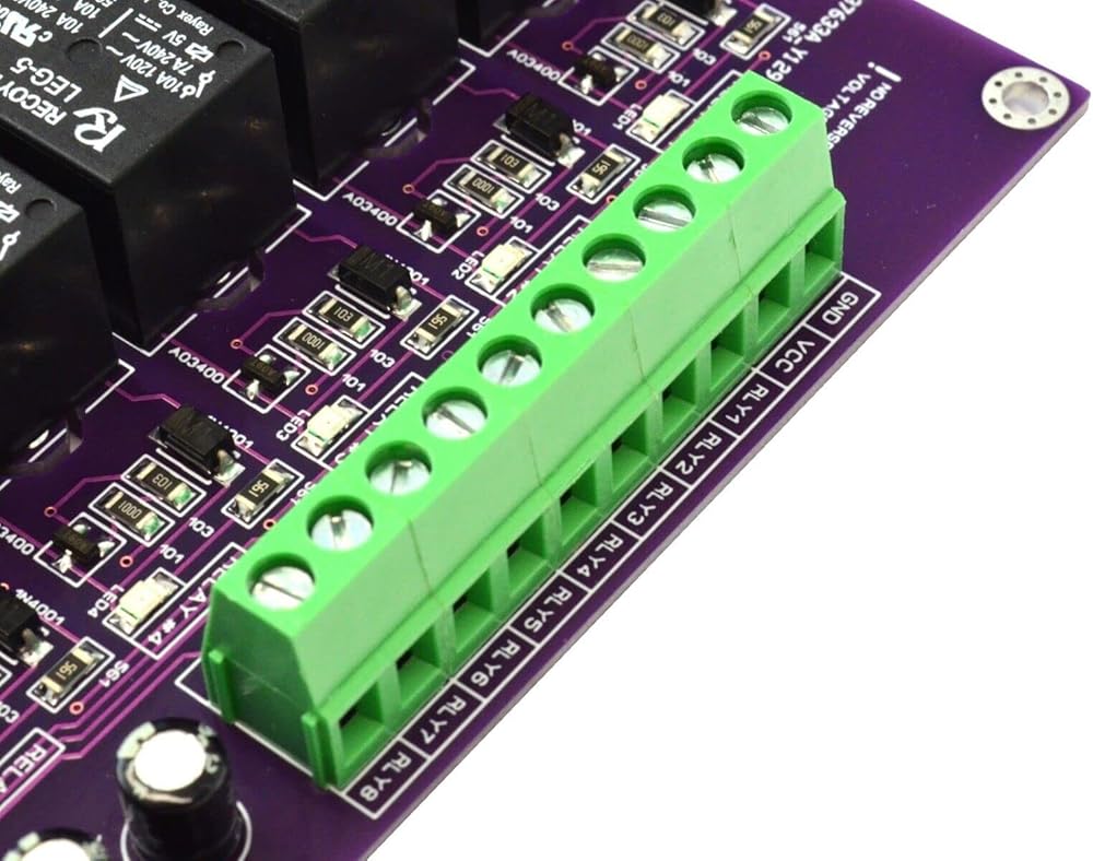 إنها لوحة واجهة مرحل ذات 8 قنوات، والتي يمكن التحكم فيها مباشرة من خلال مجموعة واسعة من وحدات التحكم الدقيقة مثل Arduino، وAVR، وPIC، وARM، وPLC، وما إلى ذلك.