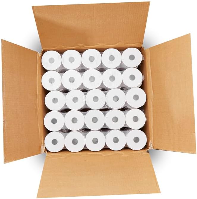 Paper of America 2 1/4 x 150' 1 Ply Bond White Paper Rolls Bond Kitchen Receipt Printer POS Cash Register Compatible with Clover Epson SNBC Star Sam4s Ellix Bixolon Casio Sharp Printers Calculators