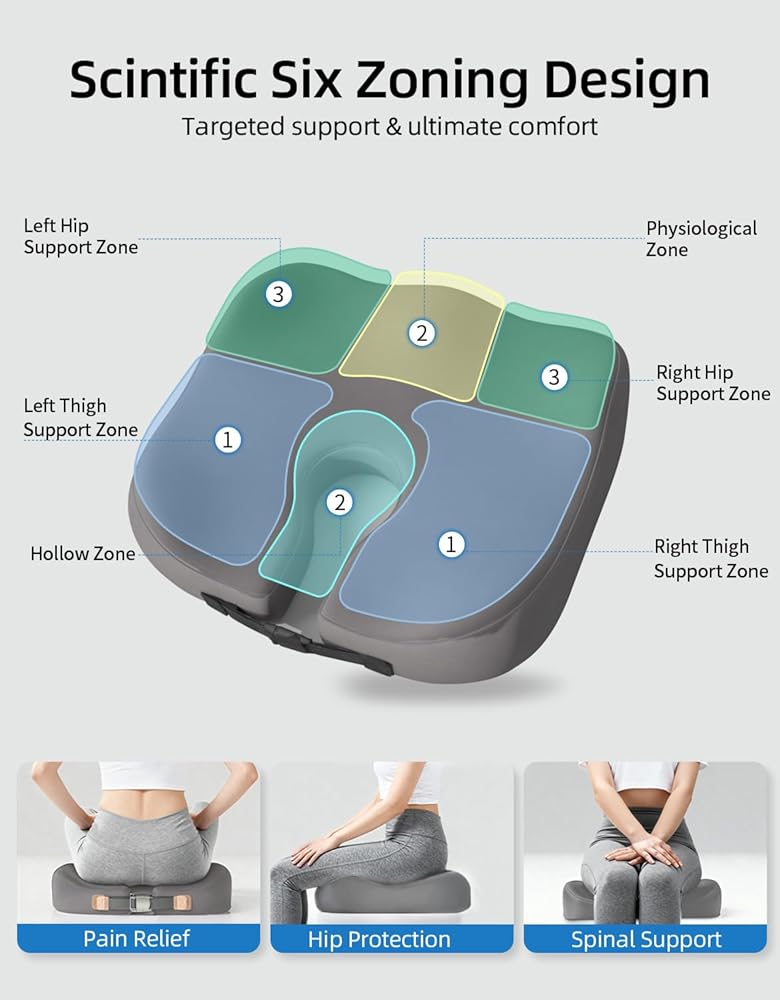 • 【 تصميم مبتكر، فقط من أجل أن تجلس بشكل أفضل 】يحافظ تصميم وصلة التجويف الأوسط وعظم الذيل على تعليق عظمة الذيل بالكامل في منطقة خالية من الضغط، مما يوفر الدعم والحماية الضروريين، ويقول وداعًا لألم عظمة الذيل. وهذا مفيد بشكل خاص للتعافي بعد العملية الجراحية أو الجلوس لفترات طويلة.
