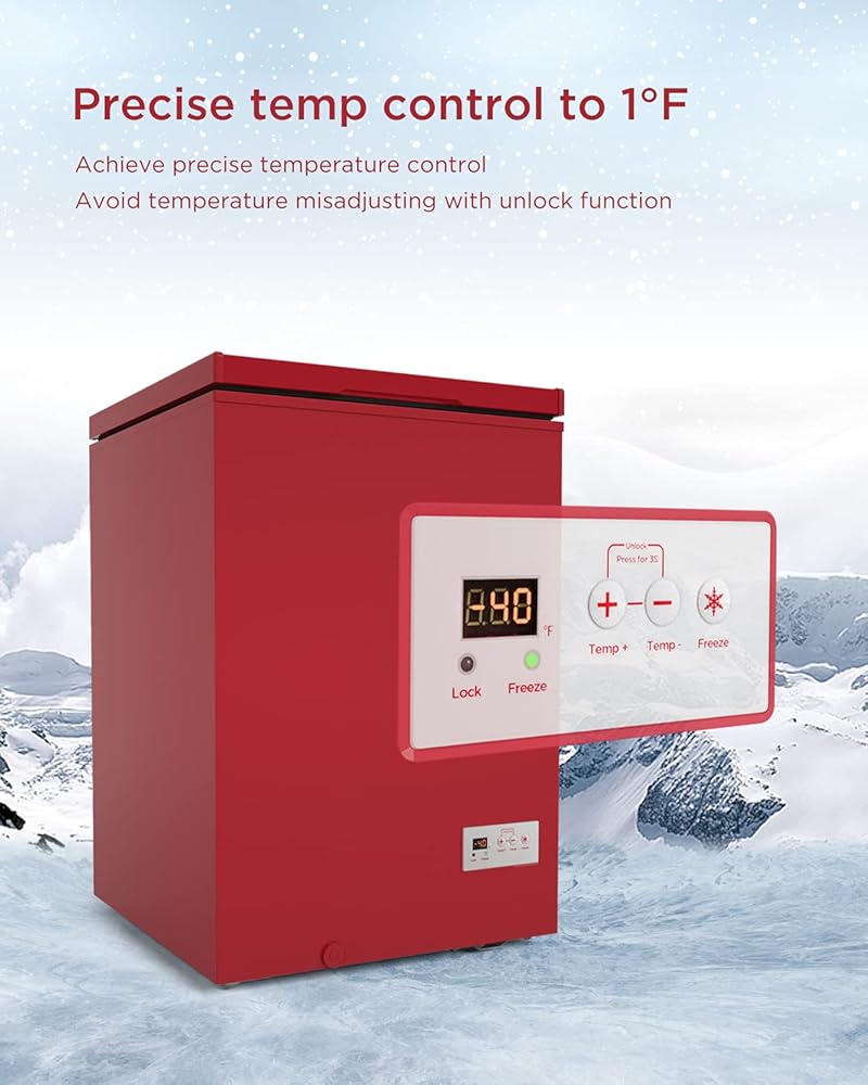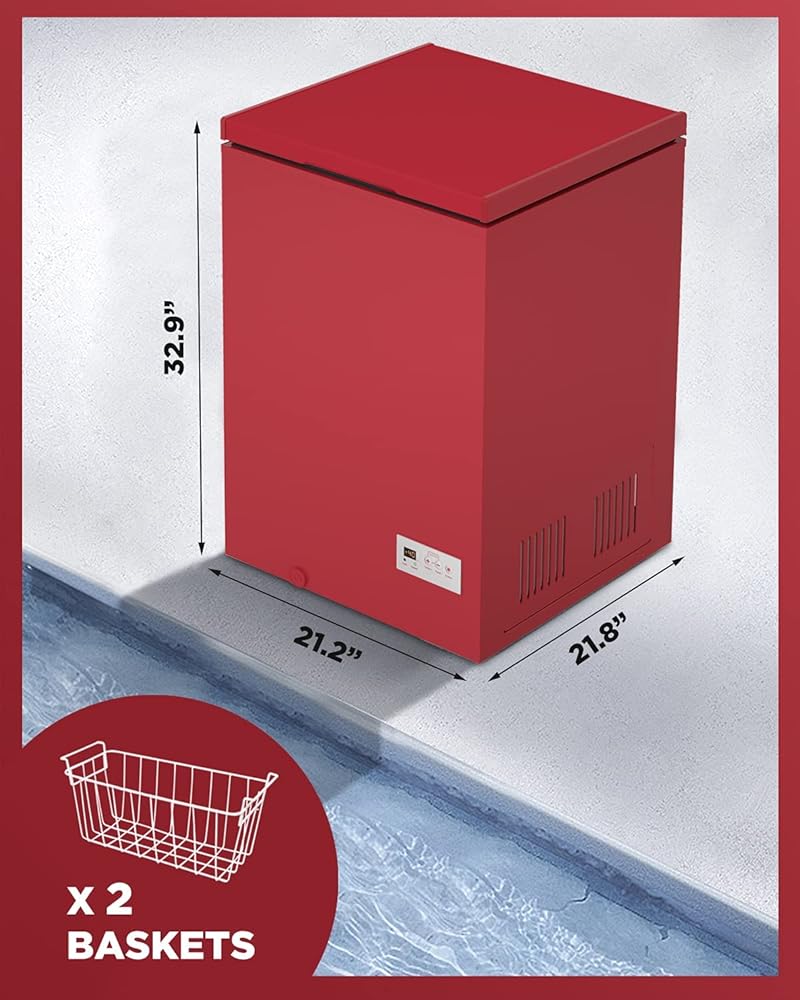 OPTIMAL STORAGE - At 3.5 Cubic Feet, the Northair Chest Freezer is compact enough for the modern home however spacious enough to store a sizeable amount of food. Freezer Dimensions: 21.2"(L) x 21.8"(W) x 30.9"(H) and is light and easy to move.It will come with two baskets .