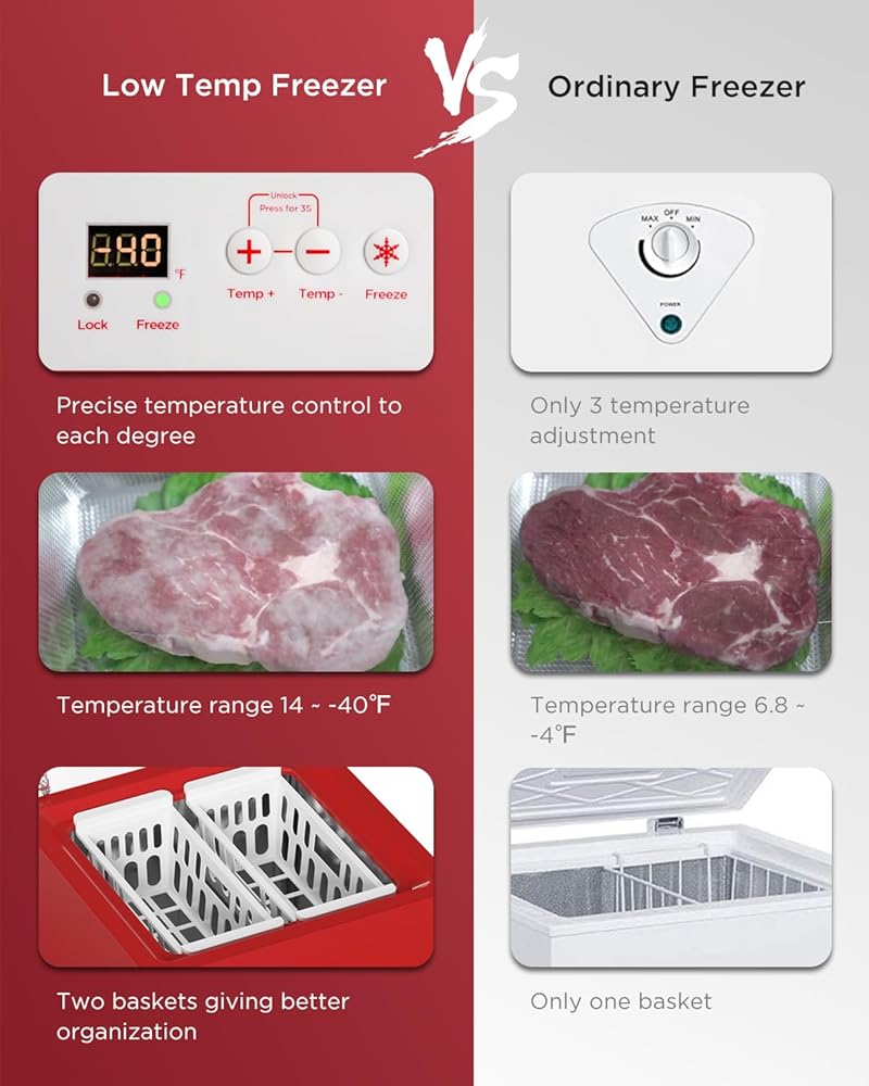 فريزر أفقي بدرجة حرارة منخفضة من Northair - 3.5 قدم مكعب مع سلتين قابلتين للإزالة - يمكن الوصول إلى صندوق الفريزر - من 14 درجة فهرنهايت إلى -40 درجة فهرنهايت