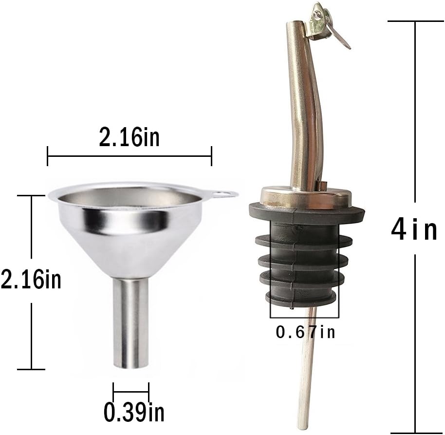 محتويات العبوة: قطعتان من فوهة زيت الزيتون، قطعة واحدة من أقماع من الستانلس ستيل. تناسب فوهة الزجاجة بمقاس 0.67 - 0.75 انش. يرجى قياس حجم فم الزجاجة قبل الشراء.