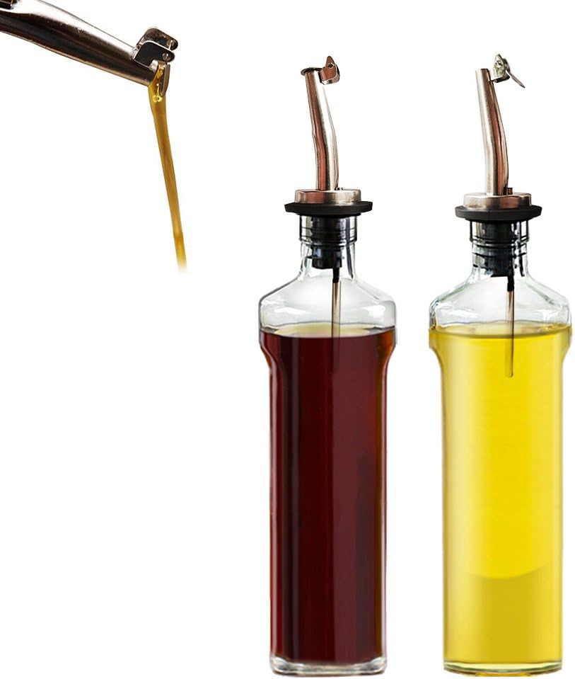 فوهة صب من الستانلس ستيل مع غطاء محكم الغلق تناسب الزجاجة جيدًا وتمنع الحشرات والغبار بشكل مثالي. يمكن للجميع صب الزيت وتوزيعه بتيار لطيف دون تسريب. مثالية لتوزيع زيوت الطبخ والصلصات والخل.