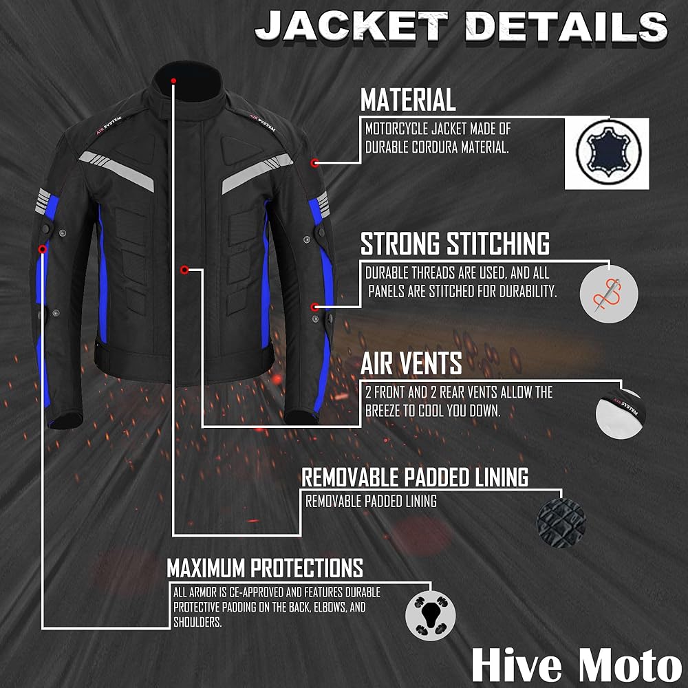 • ✅Armored Motorcycle Jacket: Built from durable 600D Cordura fabric with waterproof protection, featuring removable CE-approved shoulder and elbow protectors and thick back foam. Adjustable cuffs, waist straps, and ventilation zippers ensure comfort and breathability on long rides.