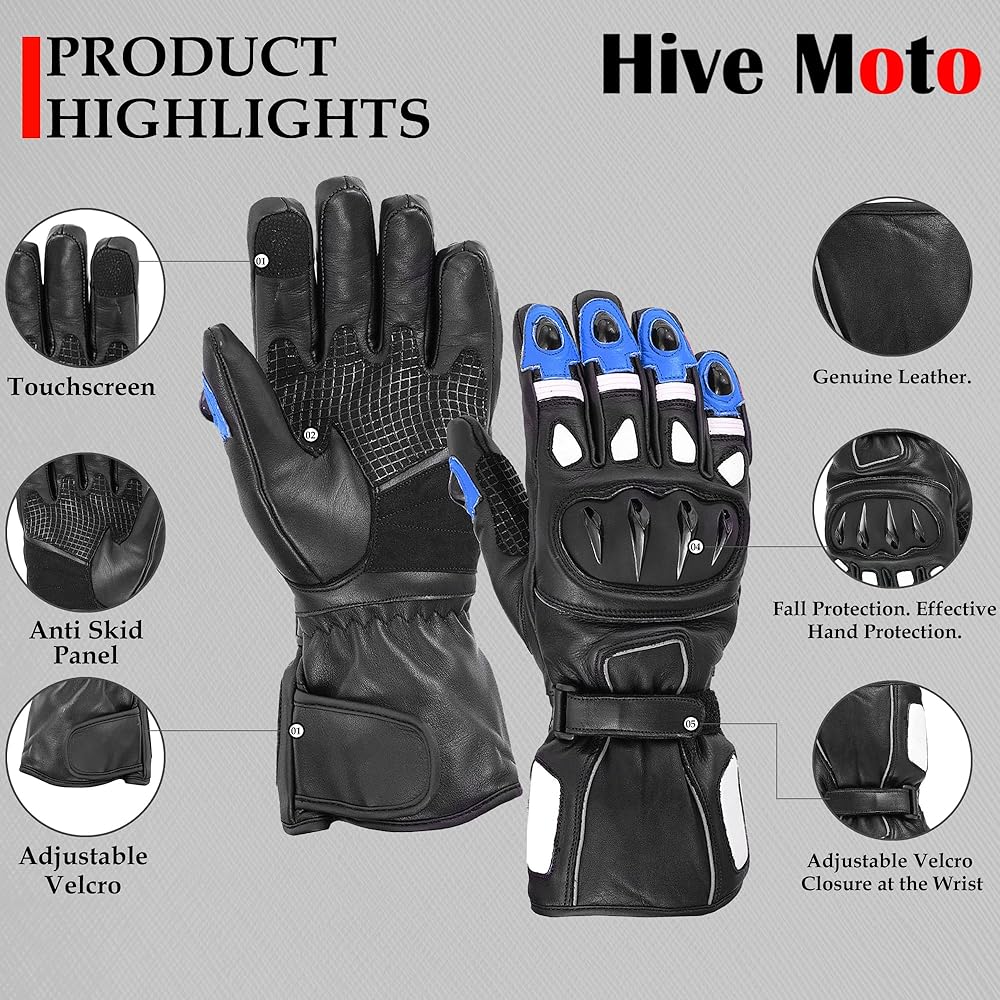 Built for year-round use, the gloves feature heavy-duty cowhide leather that blocks rain, snow, and wind. Reinforced padding and double-stitched seams provide abrasion resistance and long-lasting durability. A high-density foam lining adapts to temperature shifts, wicking sweat in the heat and locking warmth in the cold. A breathable cotton balaclava adds extra comfort for winter rides.