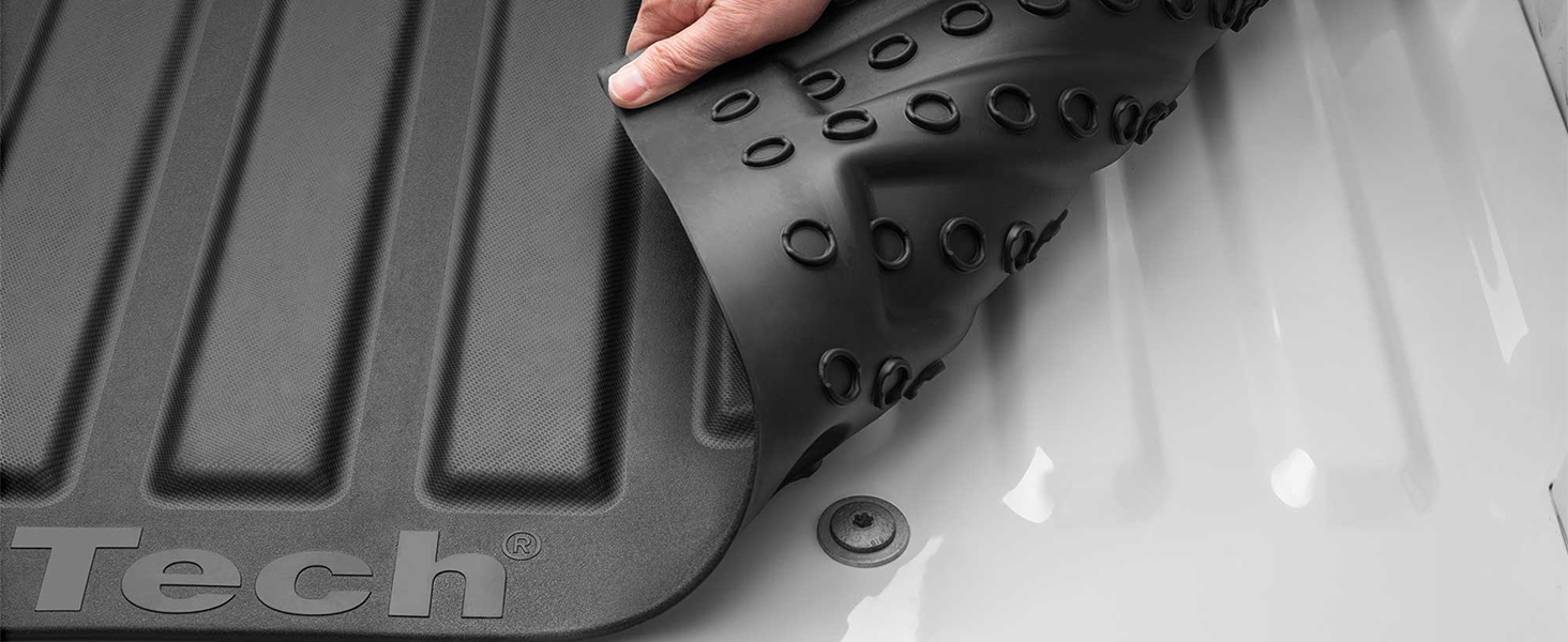 • يوفر التضليع المزخرف على الجانب العلوي قبضة إضافية، لذلك يساعد على بقاء حمولتك في مكانها! توفر الجدران المرتفعة على ظهر وجوانب ImpactLiner مزيدًا من الحماية وتساعد على احتواء أي انسكابات.