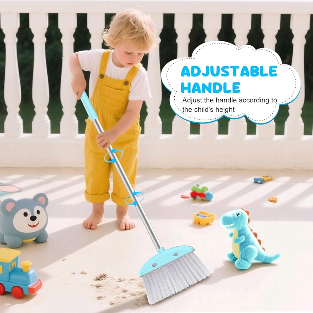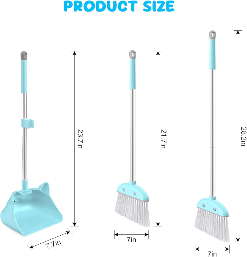 مكنسة ومجرفة للأطفال: يرجى الانتباه إلى الحجم، فهو صغير. حجم مجموعة مكنسة ومجارف الأطفال هو 7.8 × 6.7 × 28 بوصة. يوصى به للأطفال من سن 3 سنوات فما فوق، وهو مناسب للأطفال للمشاركة في الأعمال المنزلية.