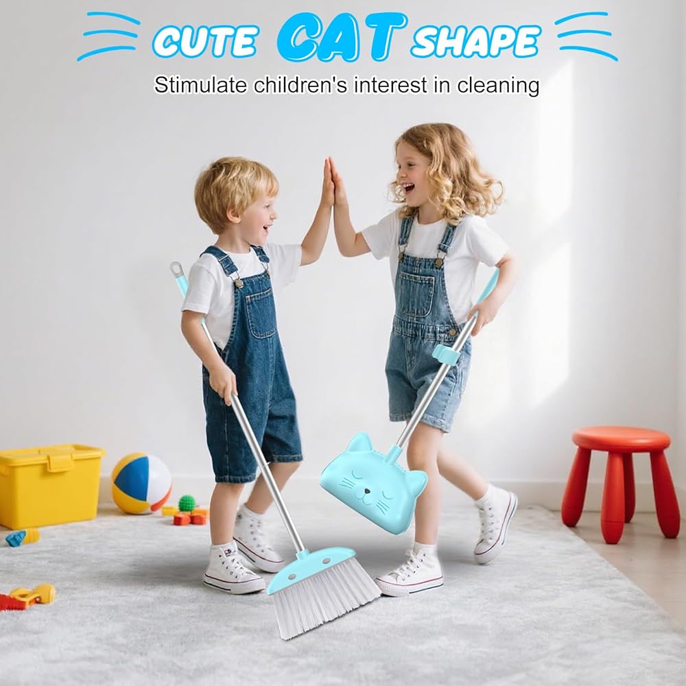 تصميم فريد: تم تصميم وعاء الأتربة على شكل قطة لطيفة، مع تجسيد الرأس لملامح وجه القطة، مما يجذب الأطفال ويجعل التنظيف يبدو وكأنه لعبة. تحتوي المجرفة على أسنان مشط مدمجة يمكنها تنظيف الشعر والغبار الموجود على المكنسة.