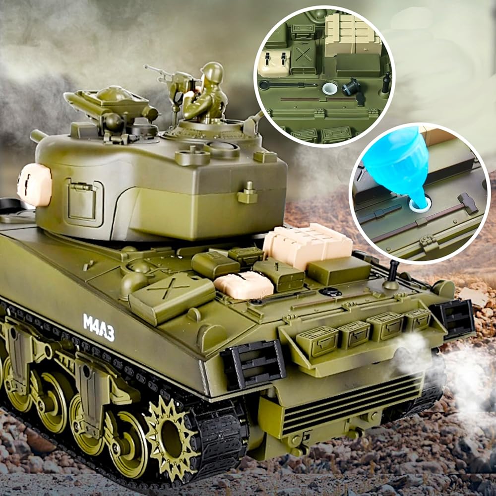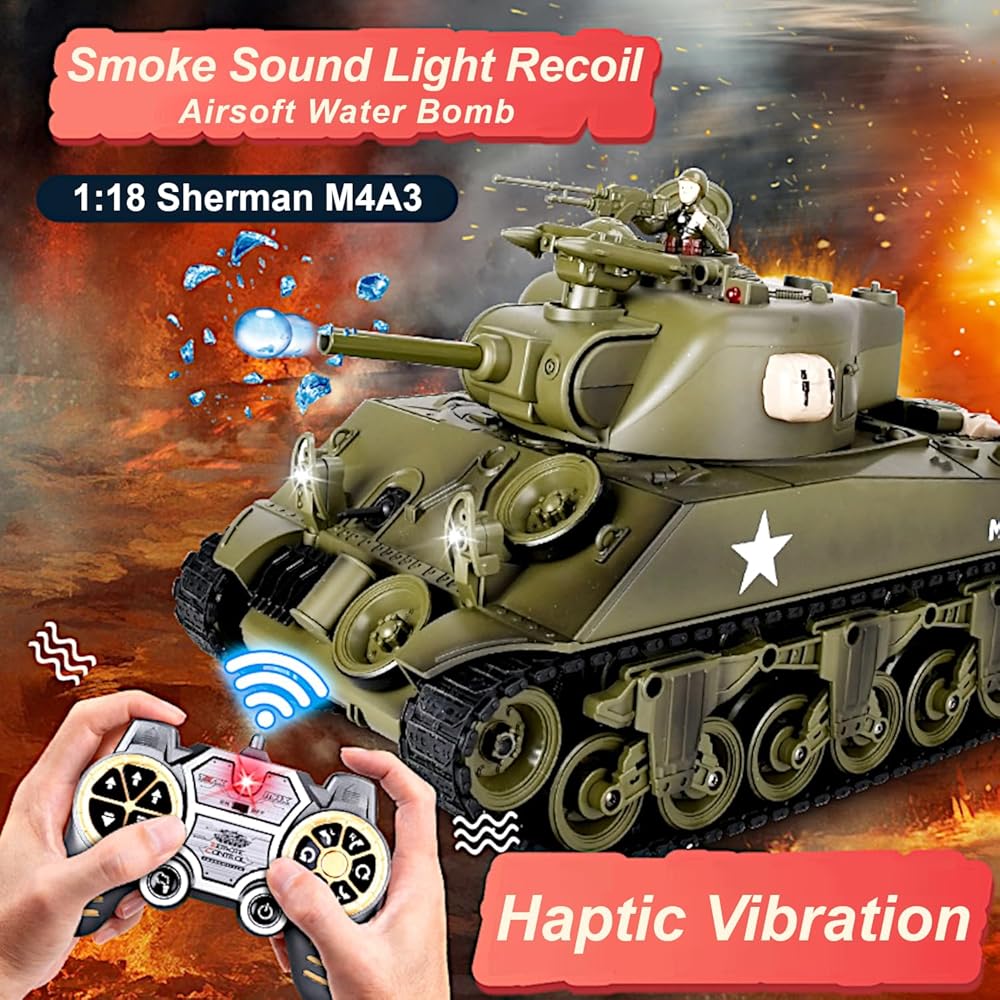 - Replica Model of WWII US Army M4A3 Sherman Medium Tank at 1/18 Scale with haptic vibration controller