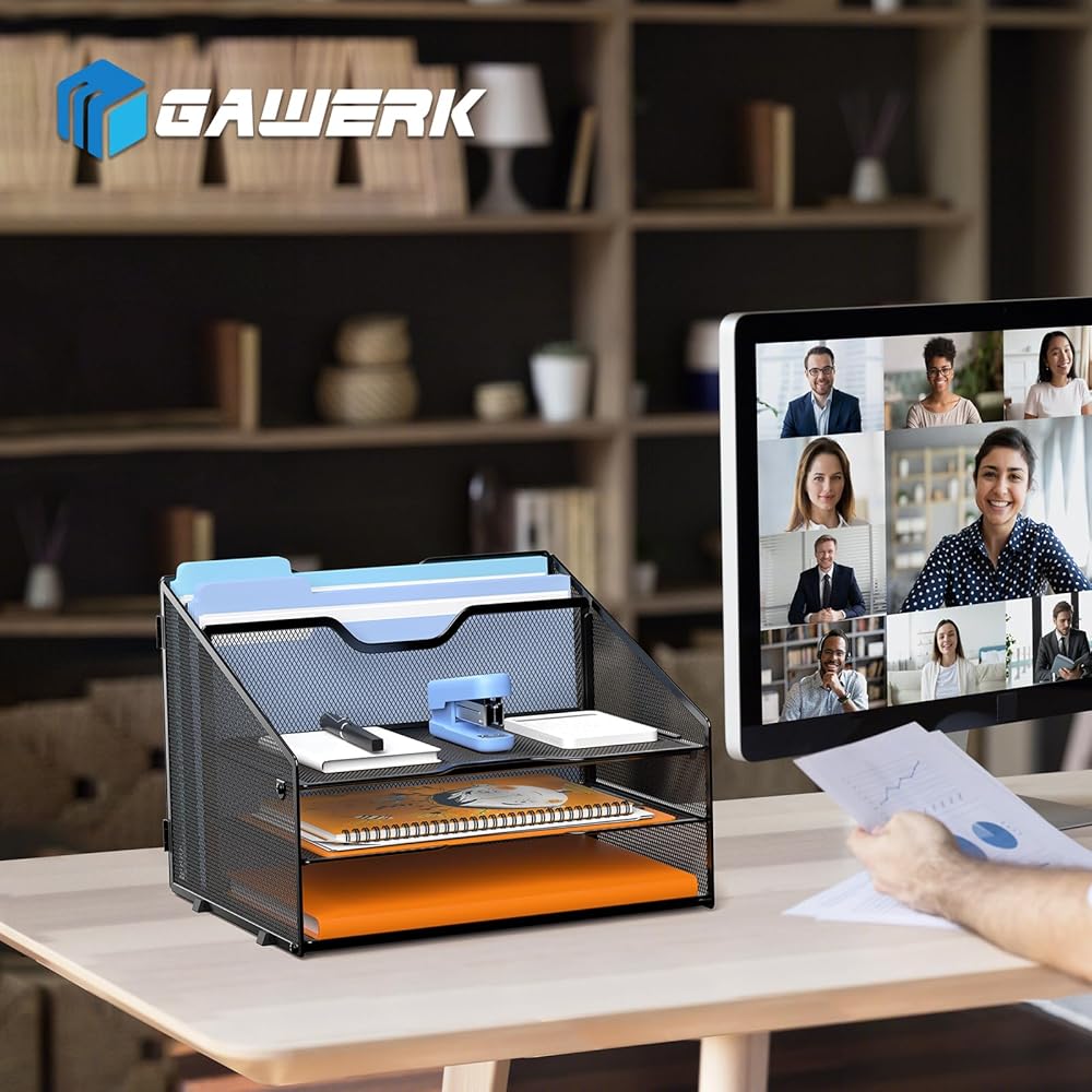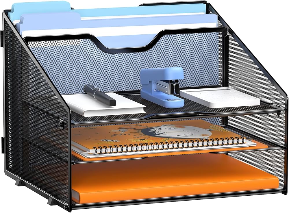 منظم صينية الرسائل، منظم ملفات مكتبي شبكي مع 3 أدراج ورقية وقسمين عموديين، فارغ