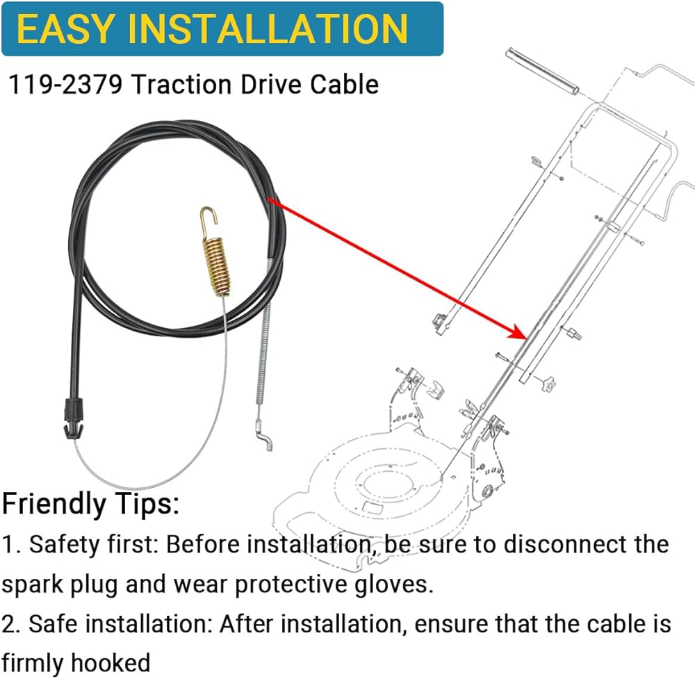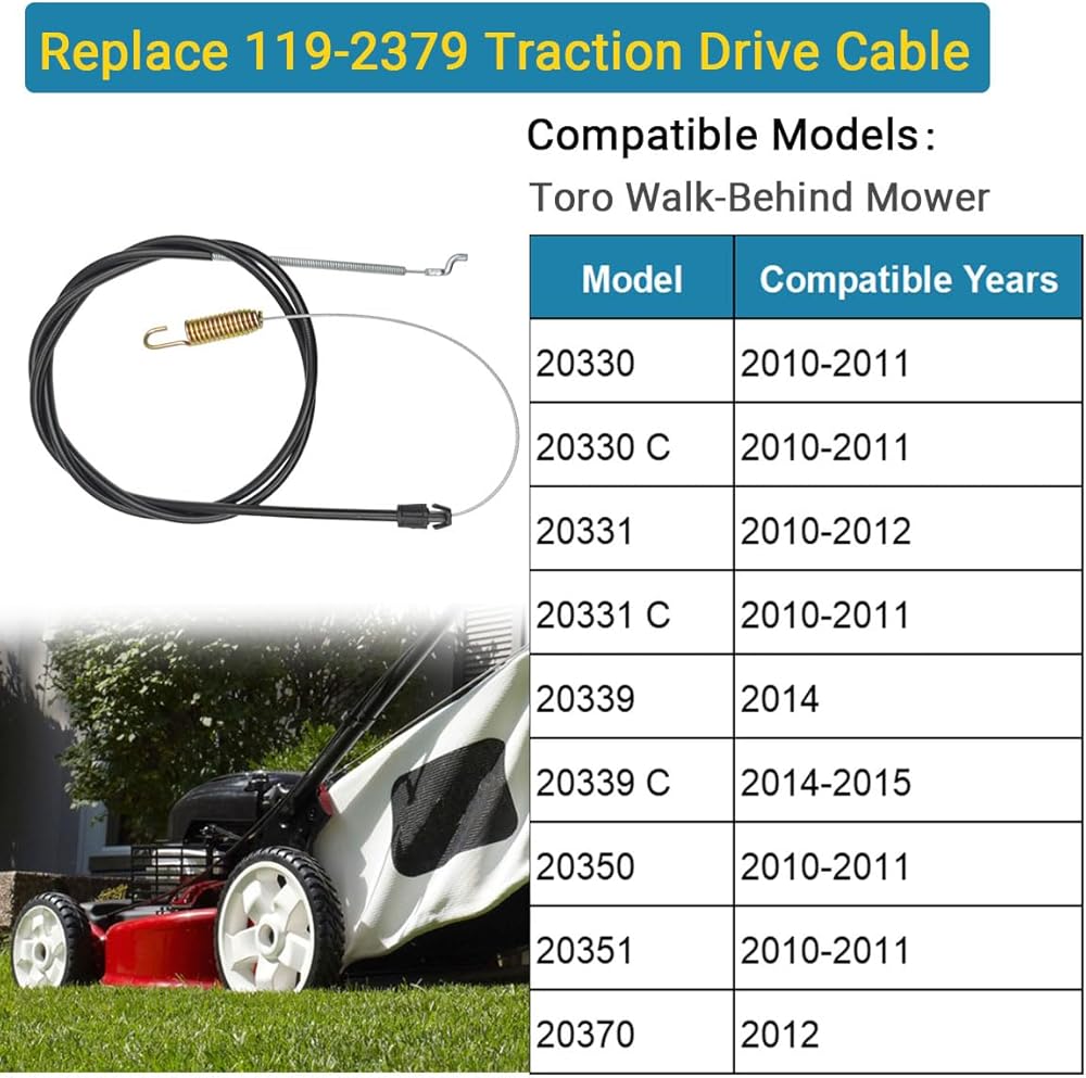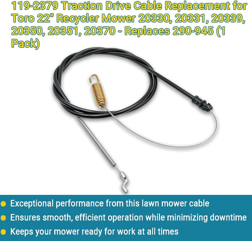 • ملاءمة مضمونة لجزازات Toro Recycler - مصممة لتتوافق مع مواصفات المعدات الأصلية. كابل الفرامل (112-8818) يناسب موديلات Toro 20 بوصة و22 بوصة بما في ذلك 20330، 20339، 20314، 20316، 20323، 20331، 20338. كابل الجر (119-2379) يناسب موديلات Toro 22 بوصة لإعادة التدوير مثل 20330، 20331، 20339، 20350، 20351، 20370، 20371، 20377، 20378، 20954 (تأكد دائمًا من رقم طراز جزازتك)