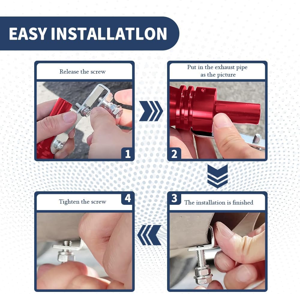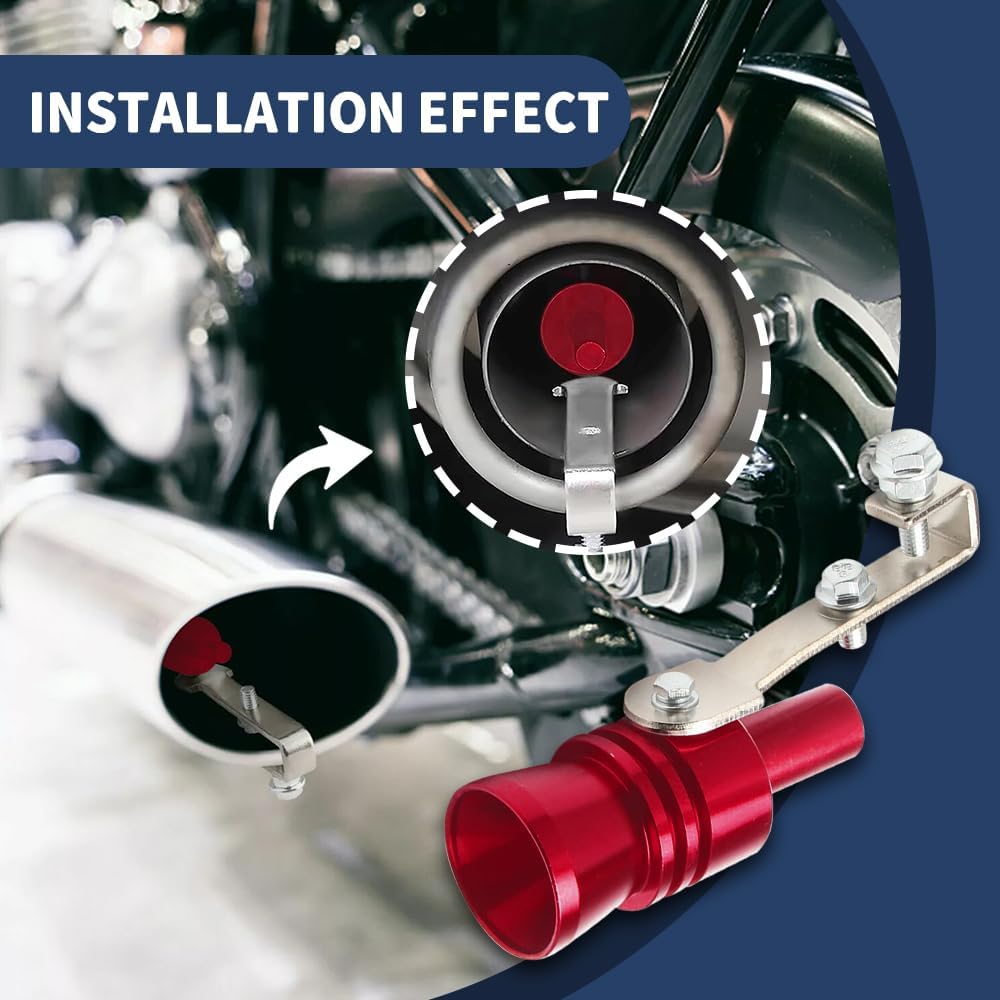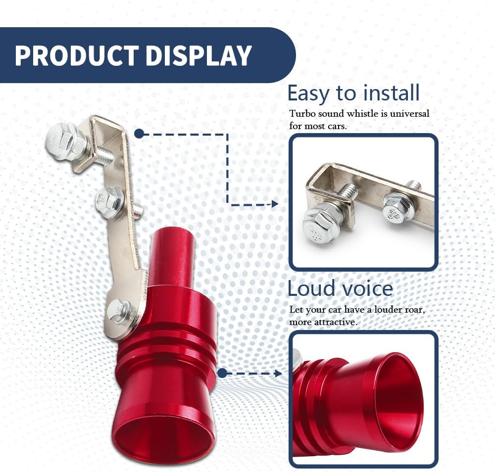 [Easy installation] : This car exhaust whistle is equipped with L-wrenches and bolts, which can be easily fixed. Loosen the bolt on the turbine whistle first, and then place the whistle into the exhaust whistle, with the wider opening facing inward. Finally, tighten the bolt