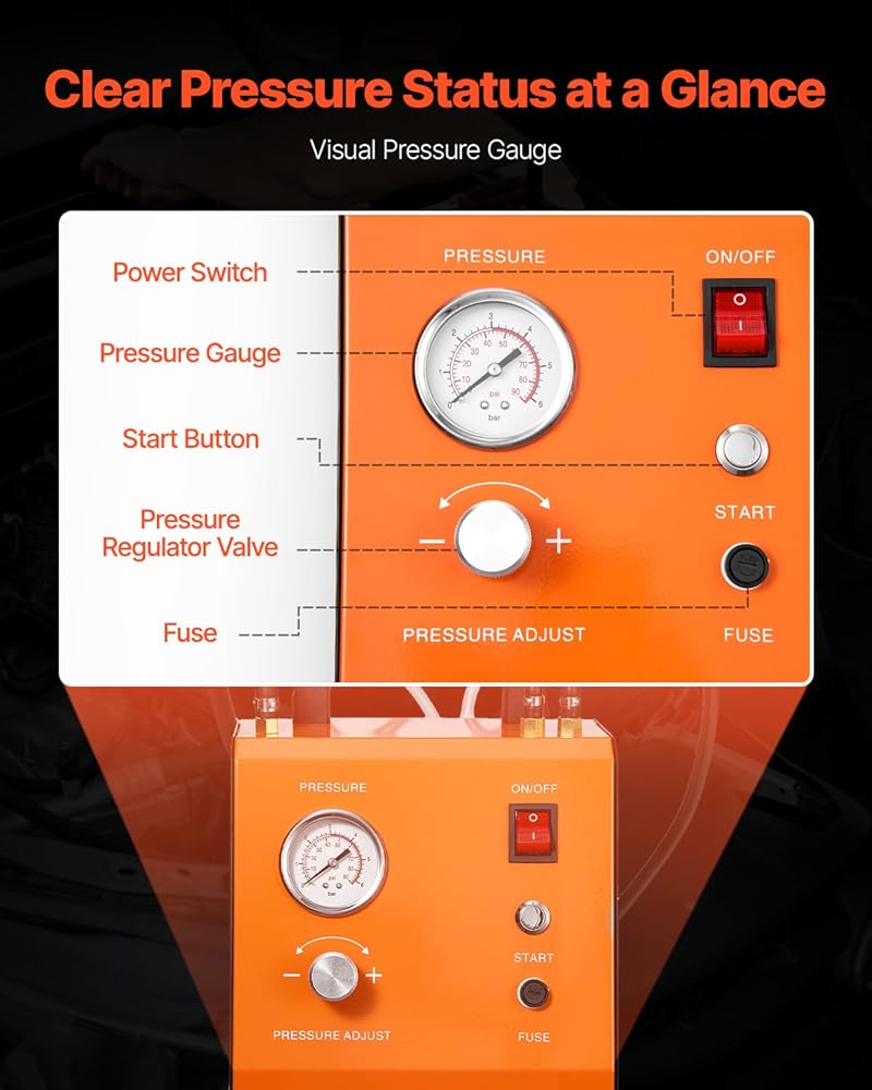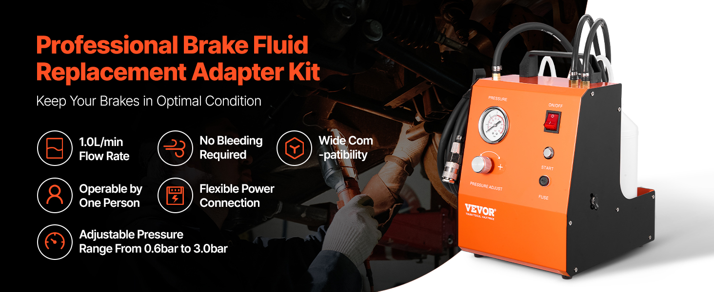 • مصدر طاقة مرن: يدعم مبدل سائل الفرامل الكهربائي كلا من المركم 12 فولت ومصادر الطاقة 110 فولت/220 فولت، مما يوفر مرونة كبيرة للاستخدام في بيئات مختلفة. سواء كنت تعمل في الداخل أو الخارج، يمكنك التبديل بسهولة بين خيارات الطاقة، مما يضمن الراحة والكفاءة لاستبدال سائل الفرامل.