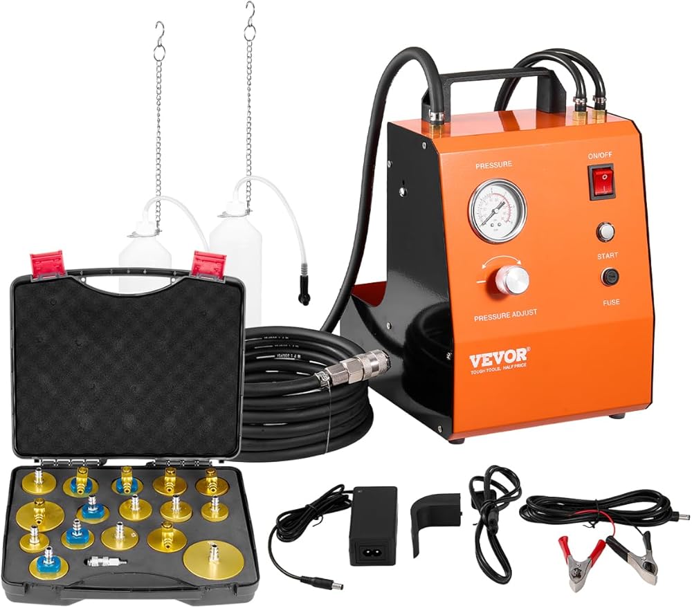مجموعة نزف الفرامل الكهربائية VEVOR، مجموعة نزف أسطوانة الفرامل الرئيسية الاحترافية 110 فولت مع مقياس الضغط ومضخة هواء مدمجة، مجموعة محول نزف الفرامل متعددة الاستخدامات لكل من طاقة التيار المستمر والتيار المتردد