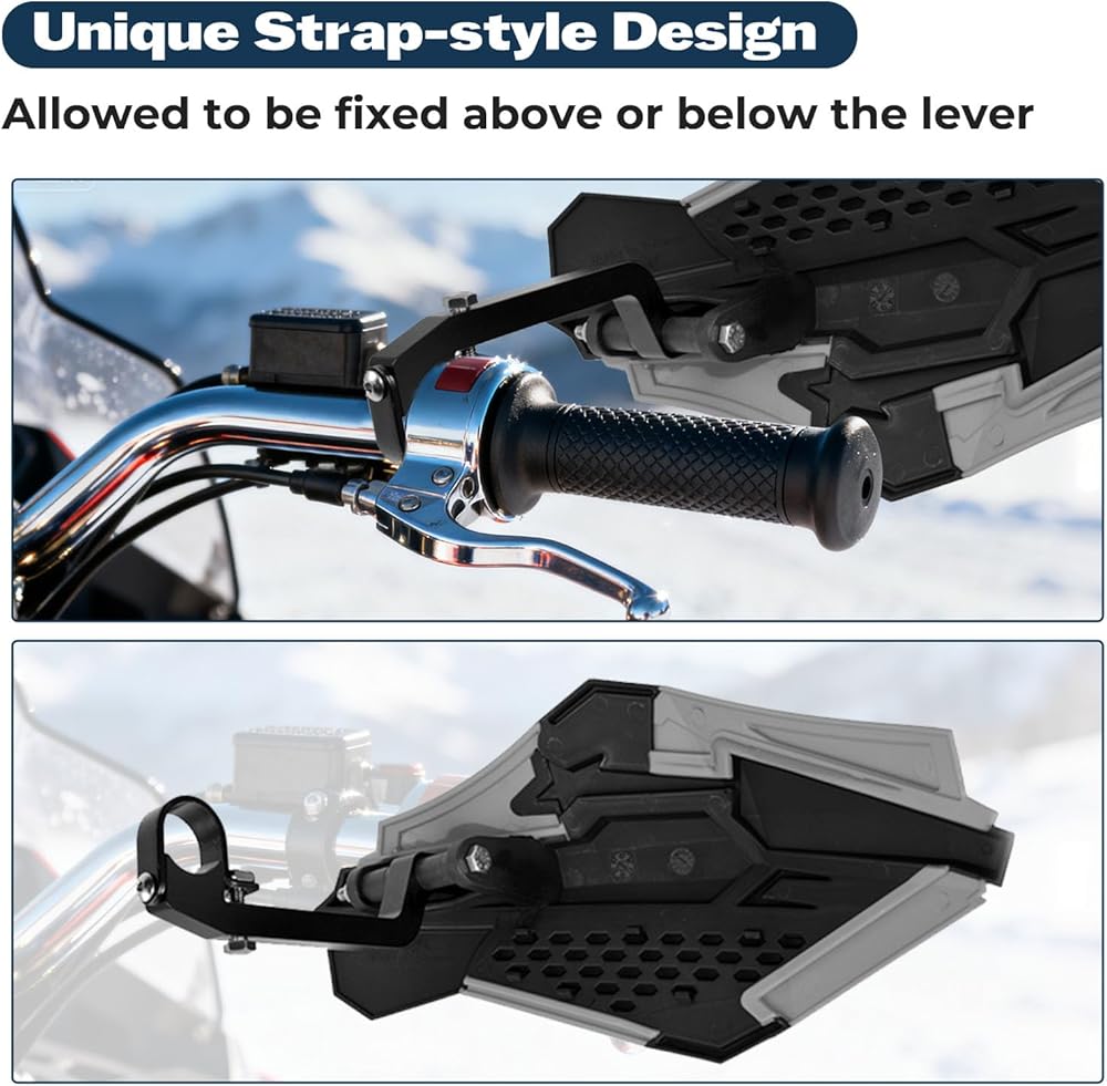 تركيب سهل: يتطلب دعامة تثبيت واقي اليد مساحة 1/2 بوصة فقط بالقرب من المقود ويمكن تركيبها مباشرة في الجزء العلوي أو السفلي من مشبك المقود. يتم تضمين جميع الأجزاء الضرورية - لا حاجة إلى عمليات شراء إضافية.