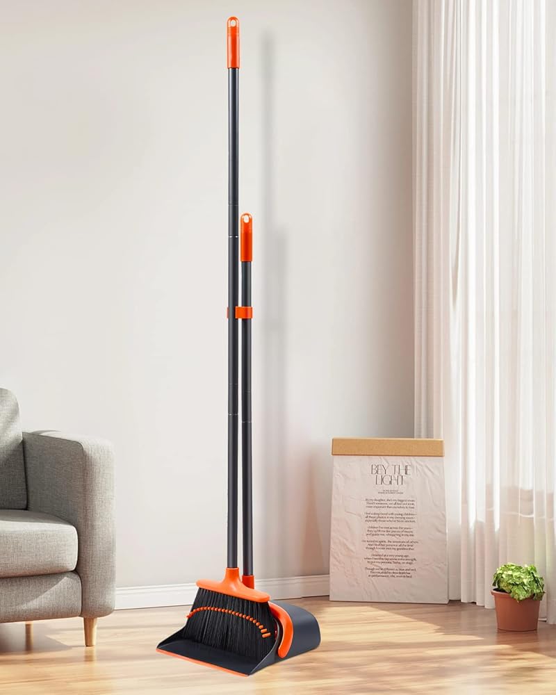 Long Handle Broom and Dustpan Set: The broom and dustpan set for home is upgraded with a 52'' long broom handle, no bend over, allows you to choose the appropriate length of the broom and dustpan set for comfortable cleaning.