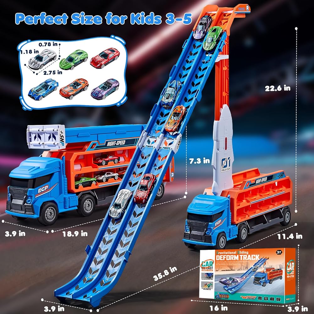 • هدايا مثالية للأولاد والبنات: تجمع مجموعة شاحنات سباق النقل بين السباق والتخزين و6 مهارات حركية دقيقة والتفكير المنطقي من خلال اللعب. مثالي لأعياد الميلاد أو الكريسماس أو عيد الشكر أو عيد الأطفال أو أي مناسبة خاصة للأولاد من سن 3 إلى 8 سنوات