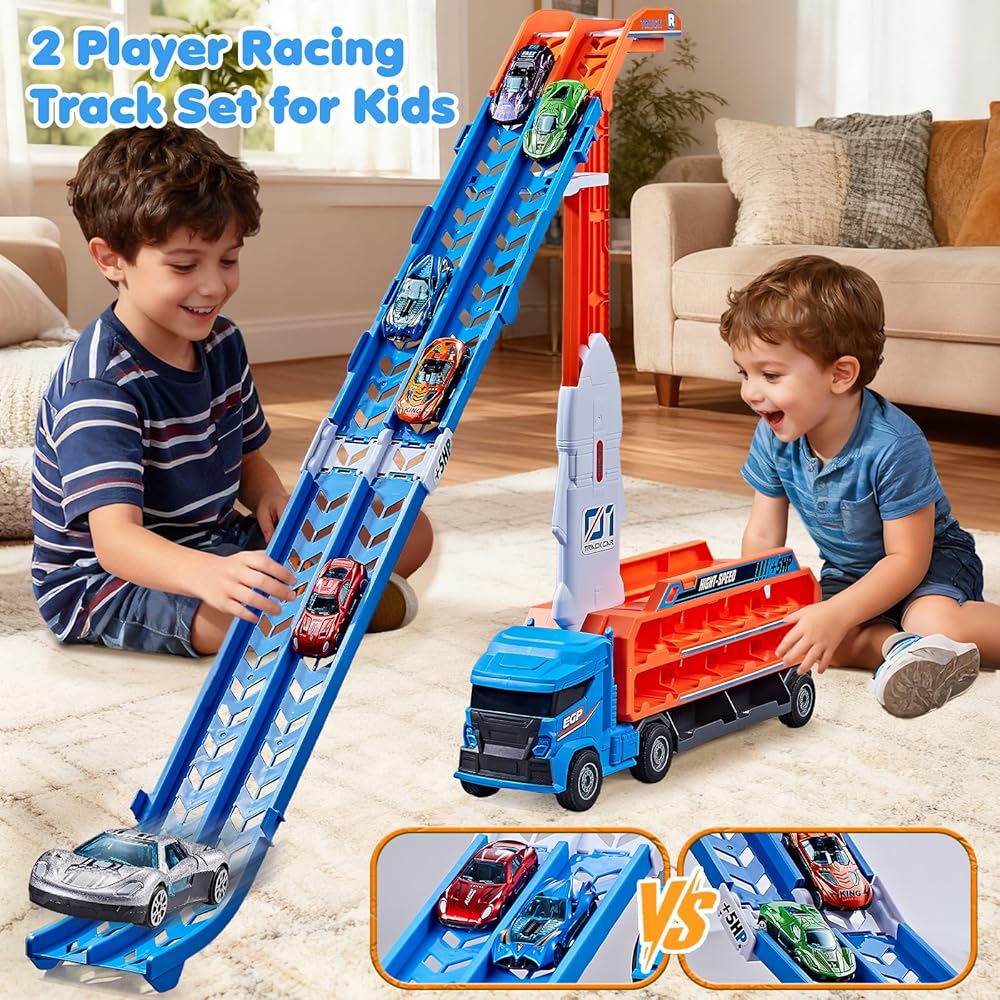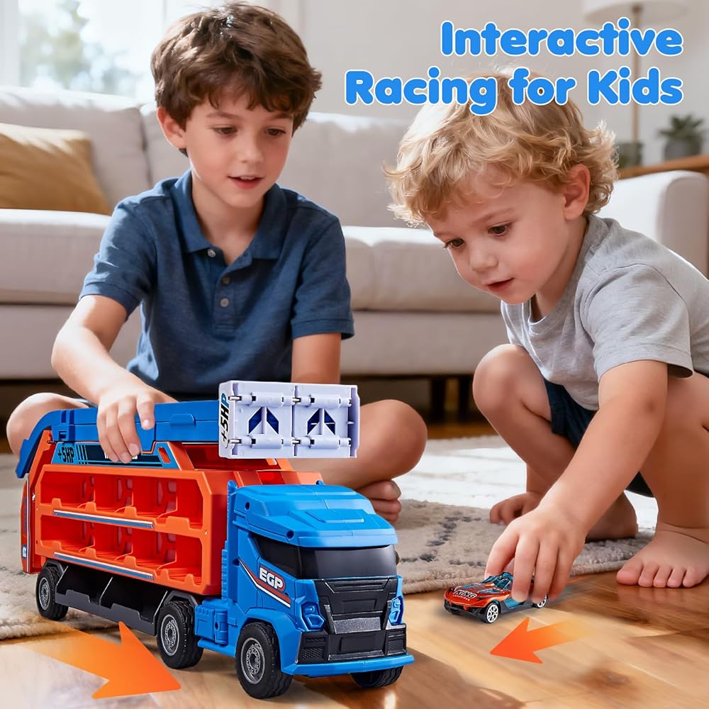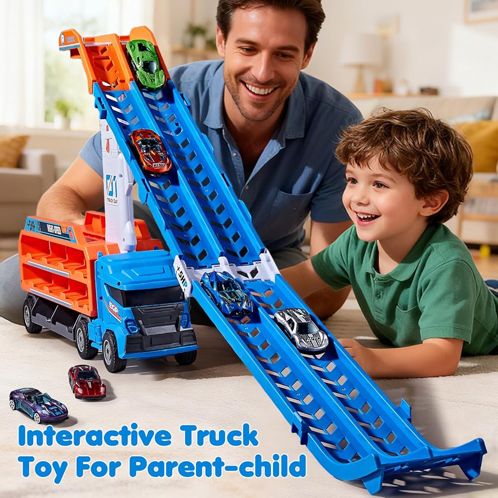 • مجموعة شاحنات مضمار السباق 4 في 1: تتحول لعبة الشاحنة متعددة الوظائف هذه إلى مركبة نقل مع مرآب مزدوج الطبقة، ومسار سباق مزدوج، وشاحنة تتميز بكابينة قابلة للفصل. يمكن للأطفال التبديل بسهولة بين أوضاع السباق والتخزين واللعب الخيالي، مما يوفر المزيد من طرق اللعب في مجموعة واحدة وإثارة لا نهاية لها للأولاد الذين تتراوح أعمارهم بين 3 و6 سنوات.