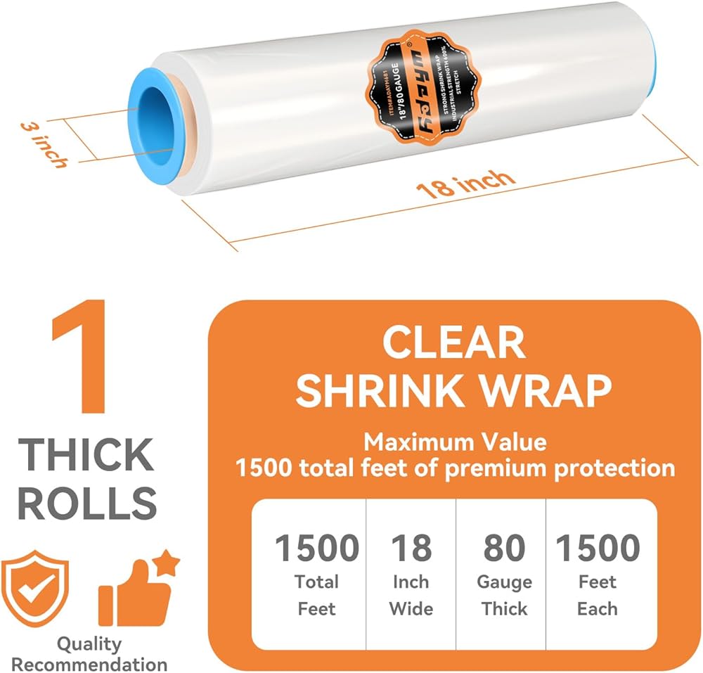 🎯 لفة تغليف بلاستيكية قابلة للانكماش بدرجة احترافية - غلاف مطاطي بلاستيكي عالي التحمل مقاس 80 يقاوم التمزق والرطوبة. حماية الأشياء الثمينة أثناء النقل أو التخزين على المدى الطويل.
