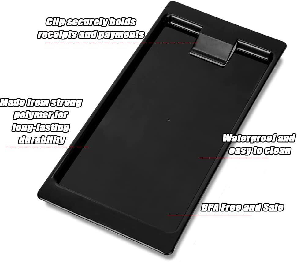 مريح للكتابة】حامل فحص النادلة هذا مناسب لملء شيكات الضيوف والحواف المرتفعة يمكن أن تجنبها من السقوط، مما يوفر للضيوف إيصالات الوجبة، وجمع المدفوعات من العملاء في مجموعة منظمة، مناسب لمستلزمات المطاعم والنادل