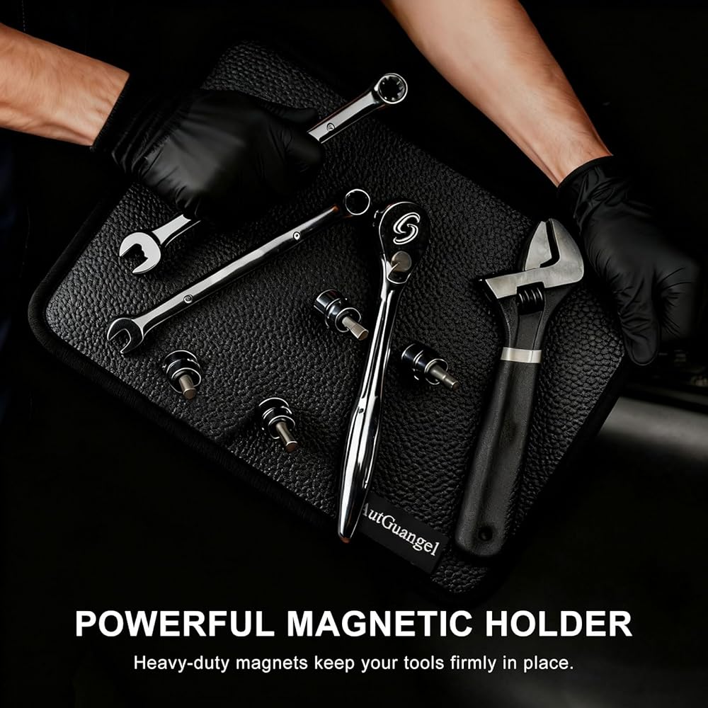 حصيرة أدوات مغناطيسية مرنة وحامل للميكانيكا، لوحة مغناطيسية احترافية غير قابلة للانزلاق مقاس 13 × 10 بوصة للأدوات، حصيرة مغناطيسية شديدة التحمل للمرآب وورش العمل وإصلاح السيارات (أسود)