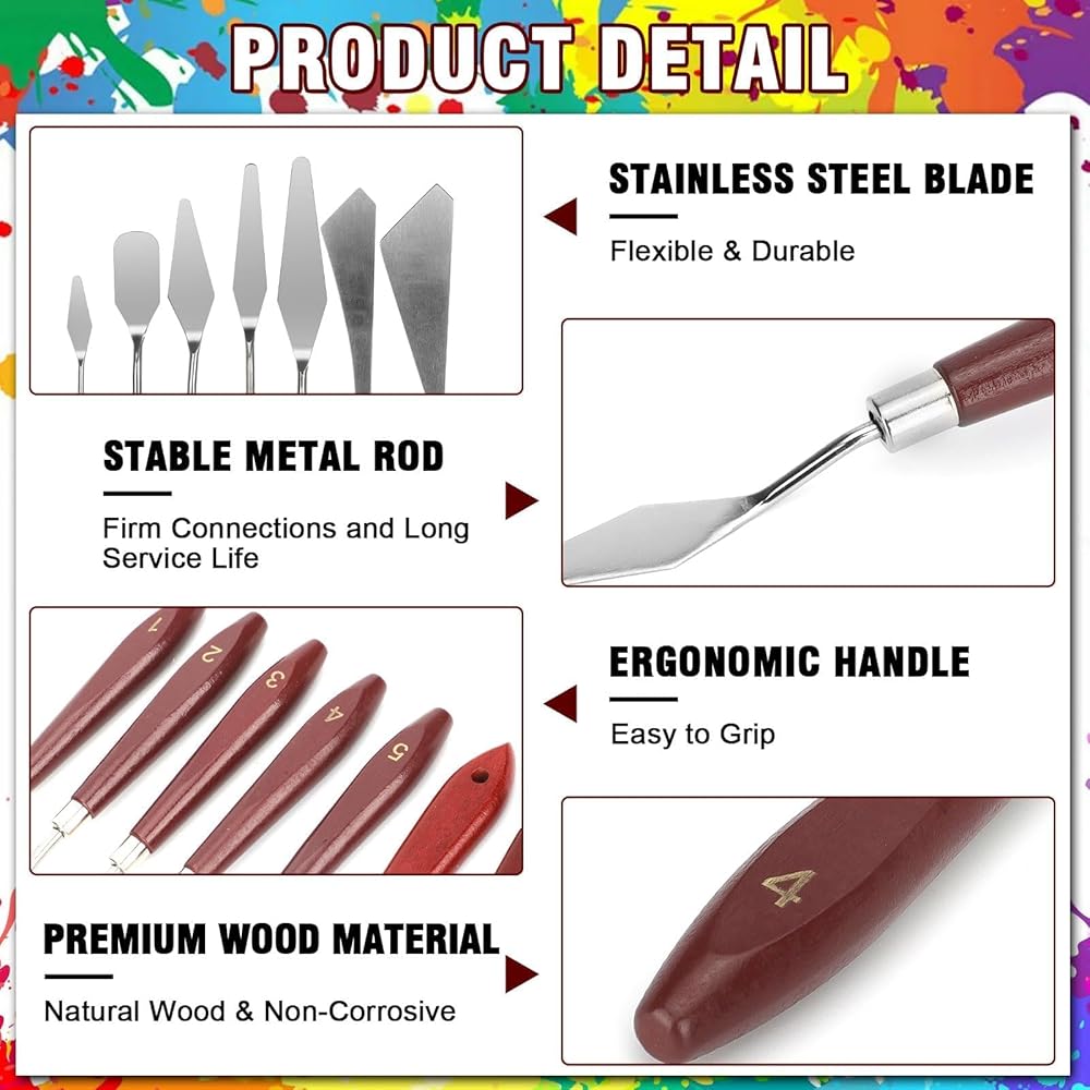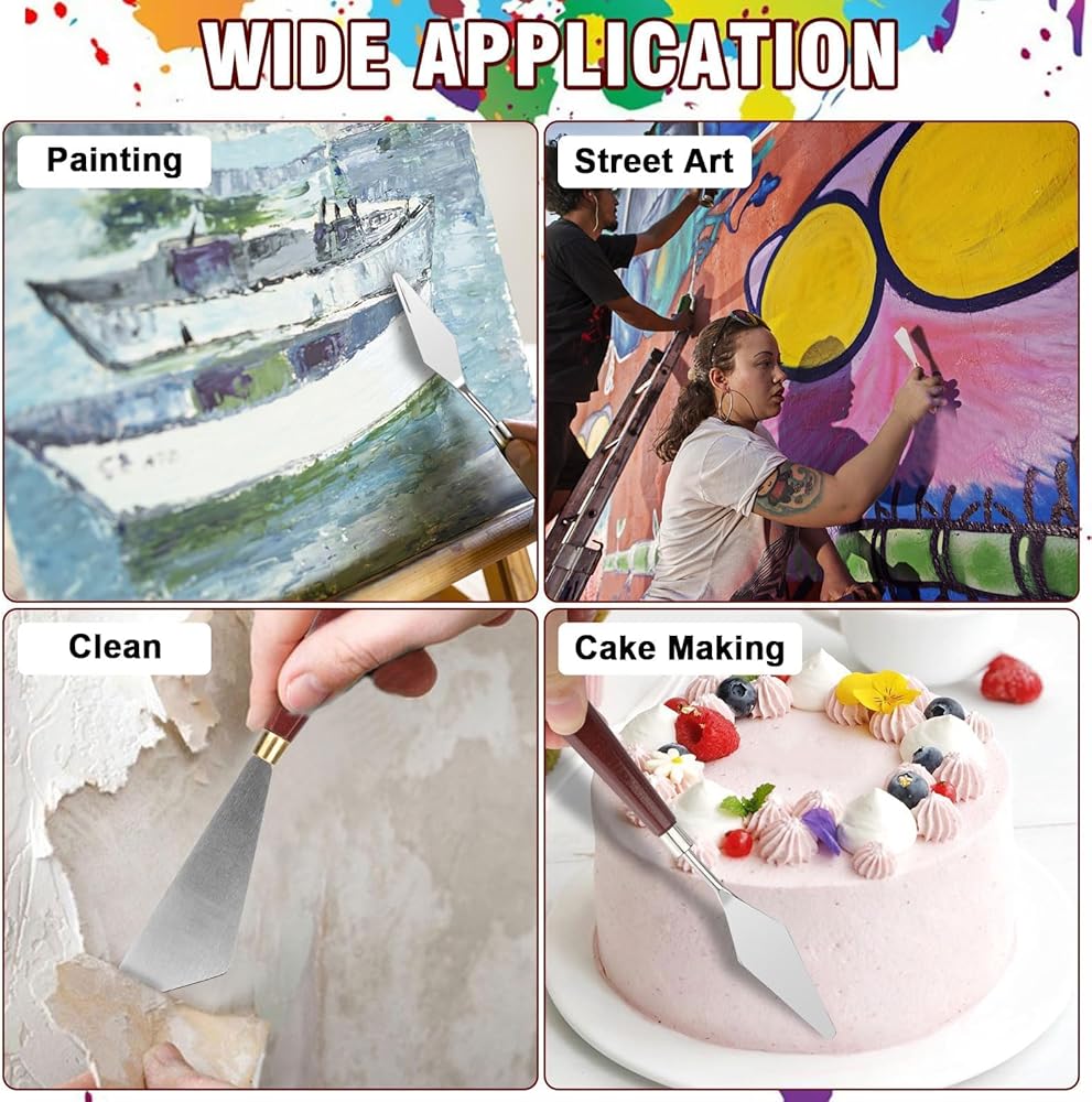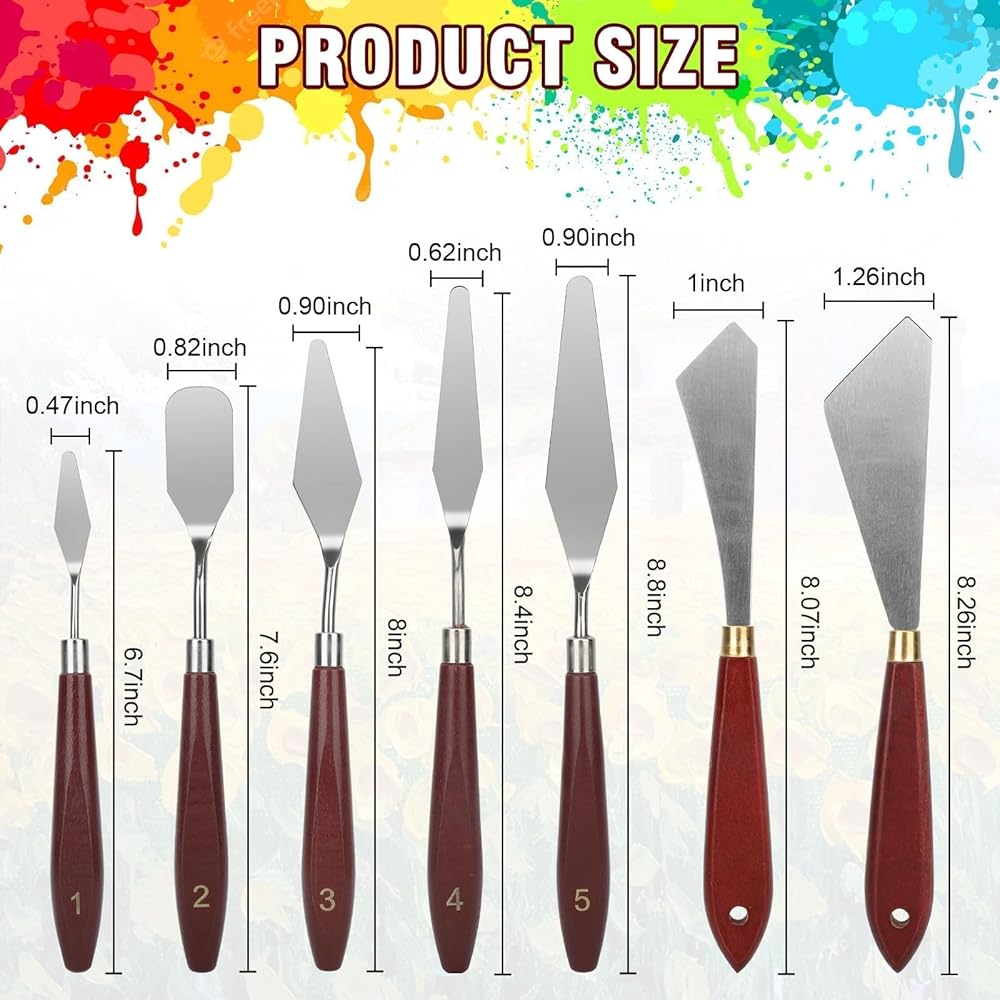 مجموعة سكاكين الطلاء المكونة من 15 قطعة: تتضمن 9 سكاكين لوحة و6 كاشطات بلاستيكية بأحجام وأشكال مختلفة لتلبية احتياجات المبتدئين والمحترفين.