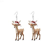 أقراط متدلية على شكل حيوان الرنة لعيد الميلاد، أكريليك مسطح، تصميم قبعة سانتا، طول 3.1 سم