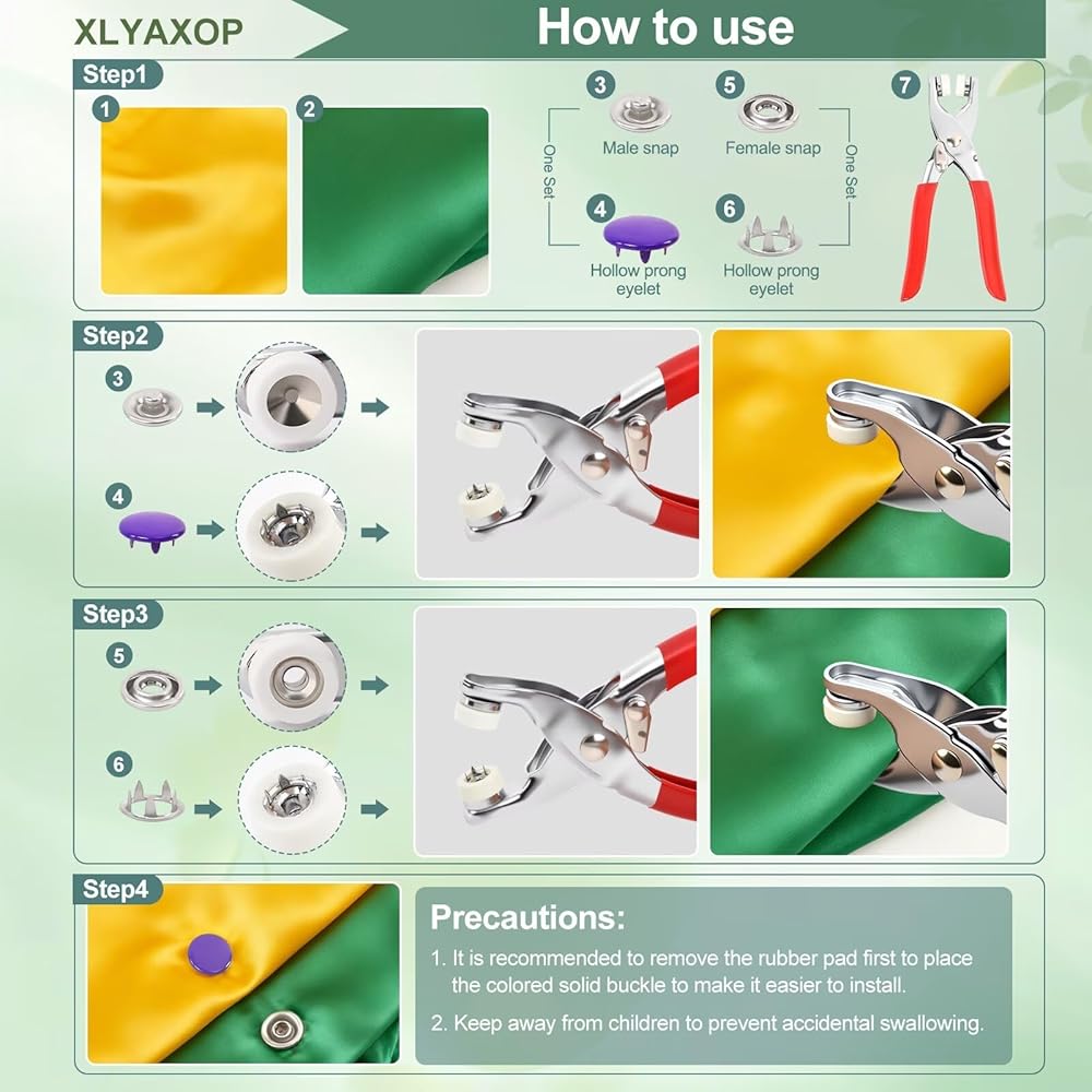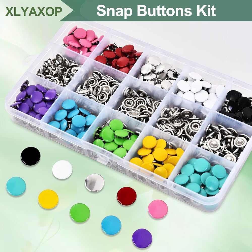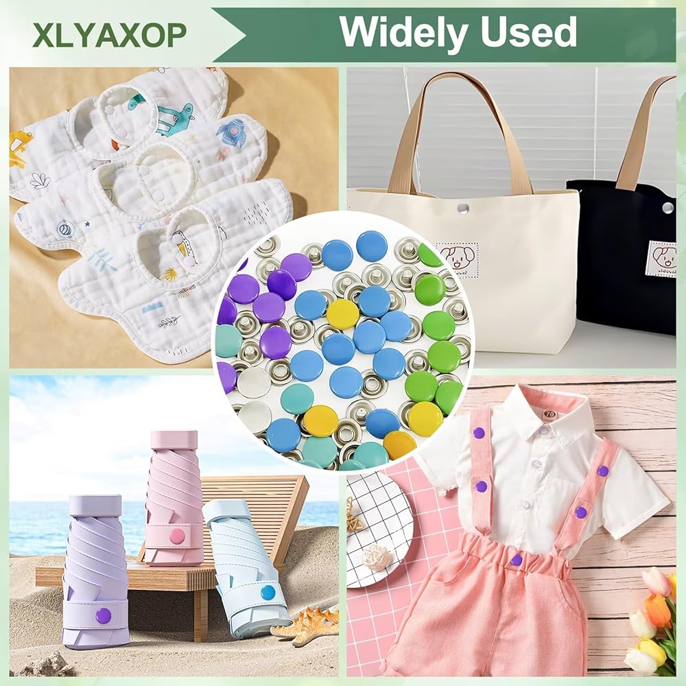 مجموعة XLYAXOP 200 مجموعة أزرار كبس مع أداة تثبيت كماشة ضغط، 803 قطعة 9.5 مم أزرار كبس معدنية للنسيج والخياطة في 10 ألوان ثابتة، أزرار كبس متينة للأعمال اليدوية والملابس