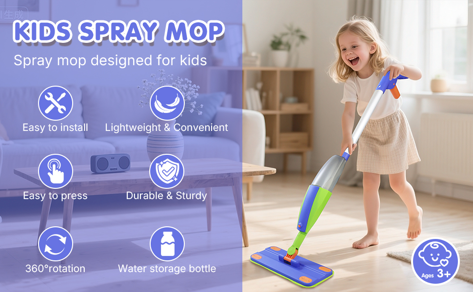 ممسحة رش للأطفال مليئة بالمرح وتجربة التنظيف الحقيقية: تصميم الرش لا يحتاج إلى بطاريات، ويمكن رشه بنقرة واحدة، حتى يتمكن الأطفال من الاستمتاع بمتعة لعب الأدوار في المسح والرش والكشط، وتحفيز الاهتمام بالعمل.