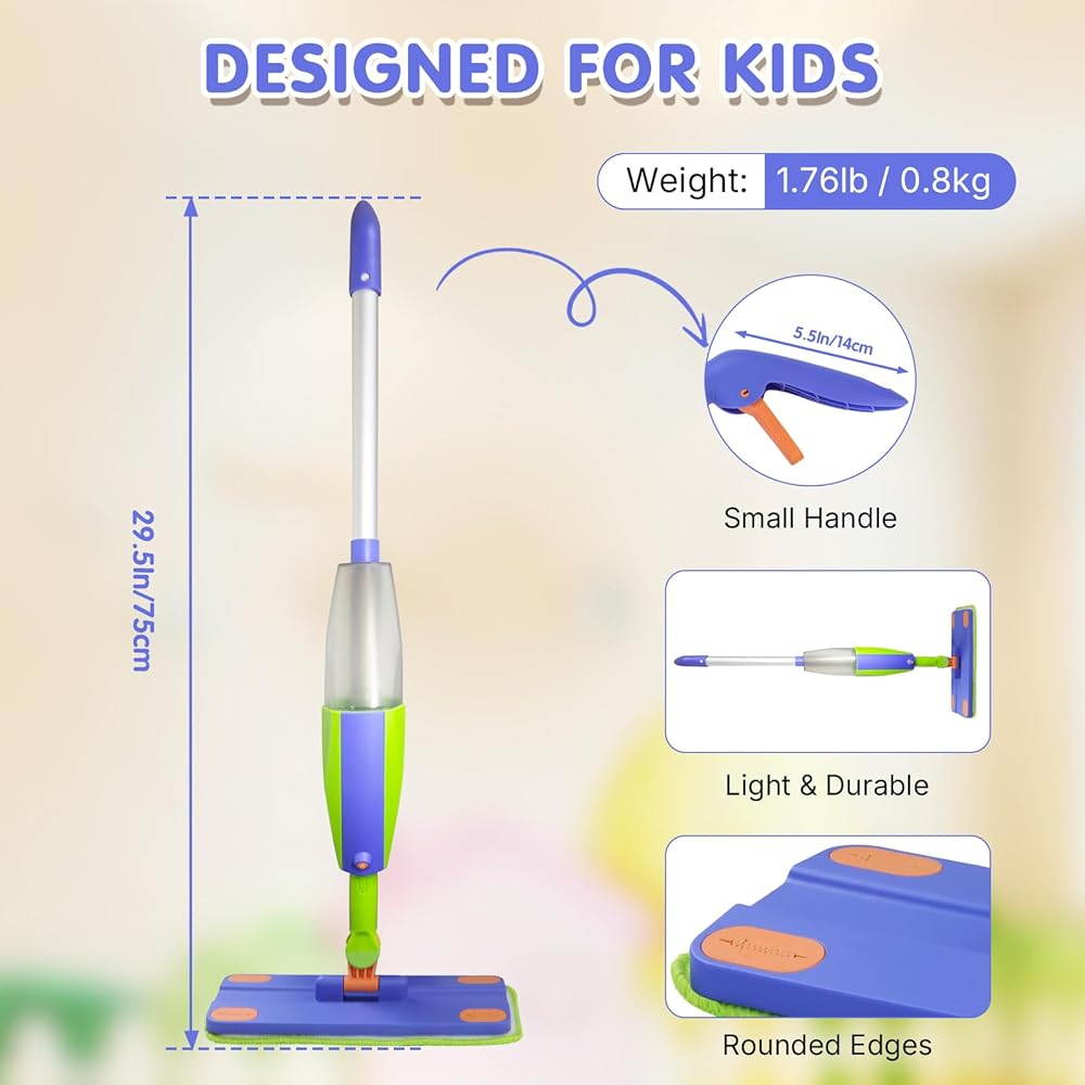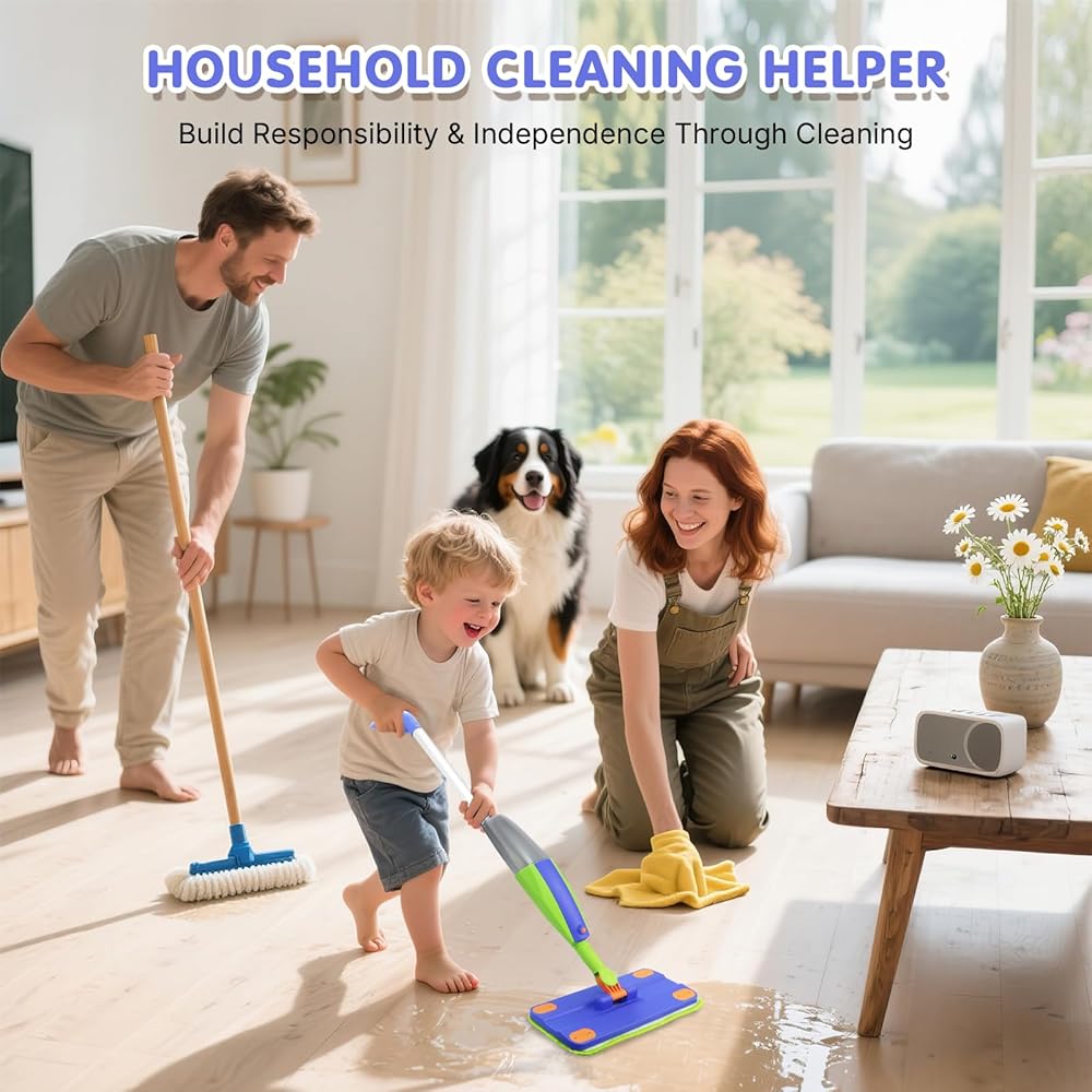 ممسحة رش للأطفال، مجموعة تنظيف حقيقية للأطفال الصغار، ممسحة صغيرة، مكنسة كهربائية للأطفال - زجاجة رش، مكشطة، وسادات من الألياف الدقيقة قابلة للغسل، مجموعة ألعاب تنظيف مونتيسوري، لعبة للأطفال الصغار من سن 3 سنوات فما فوق