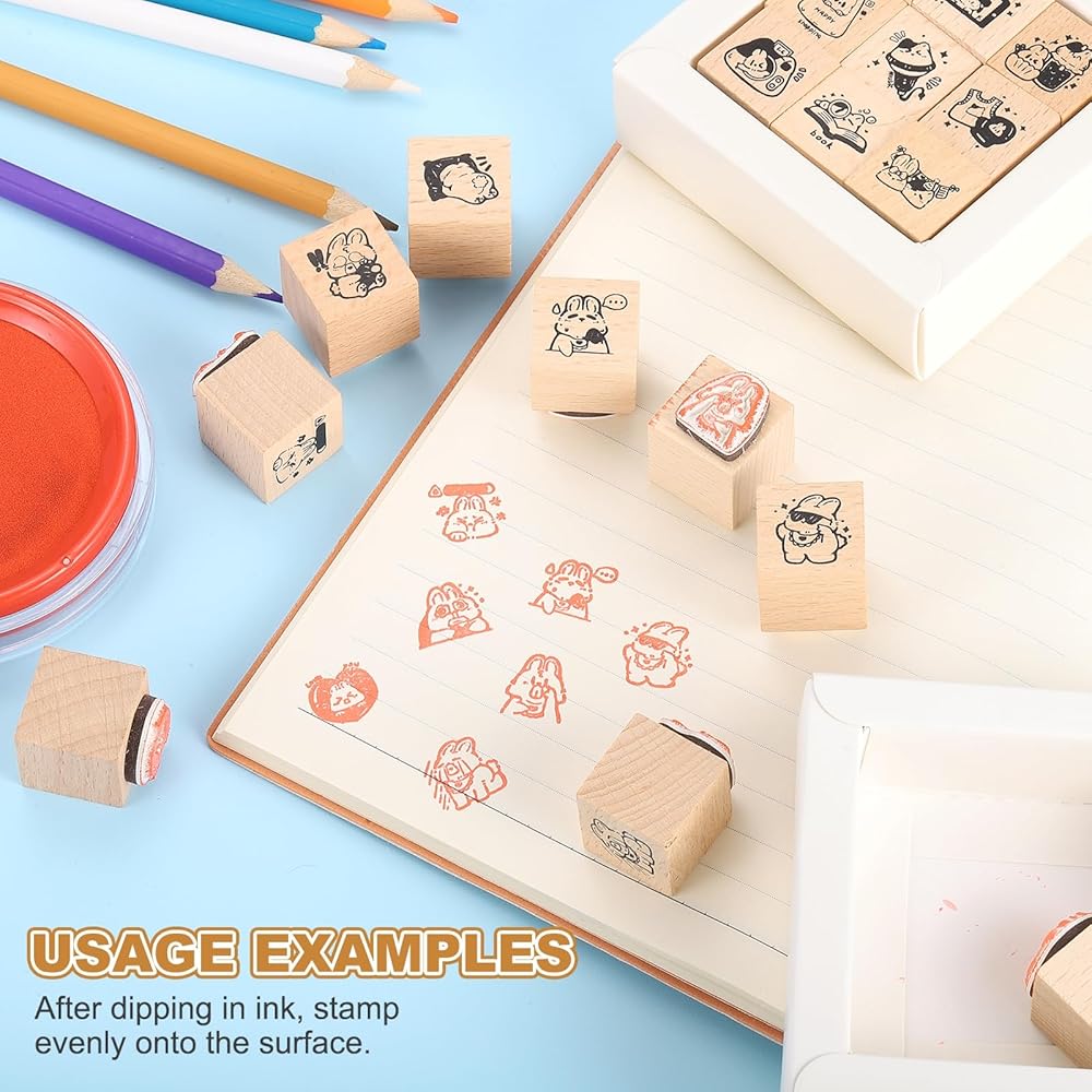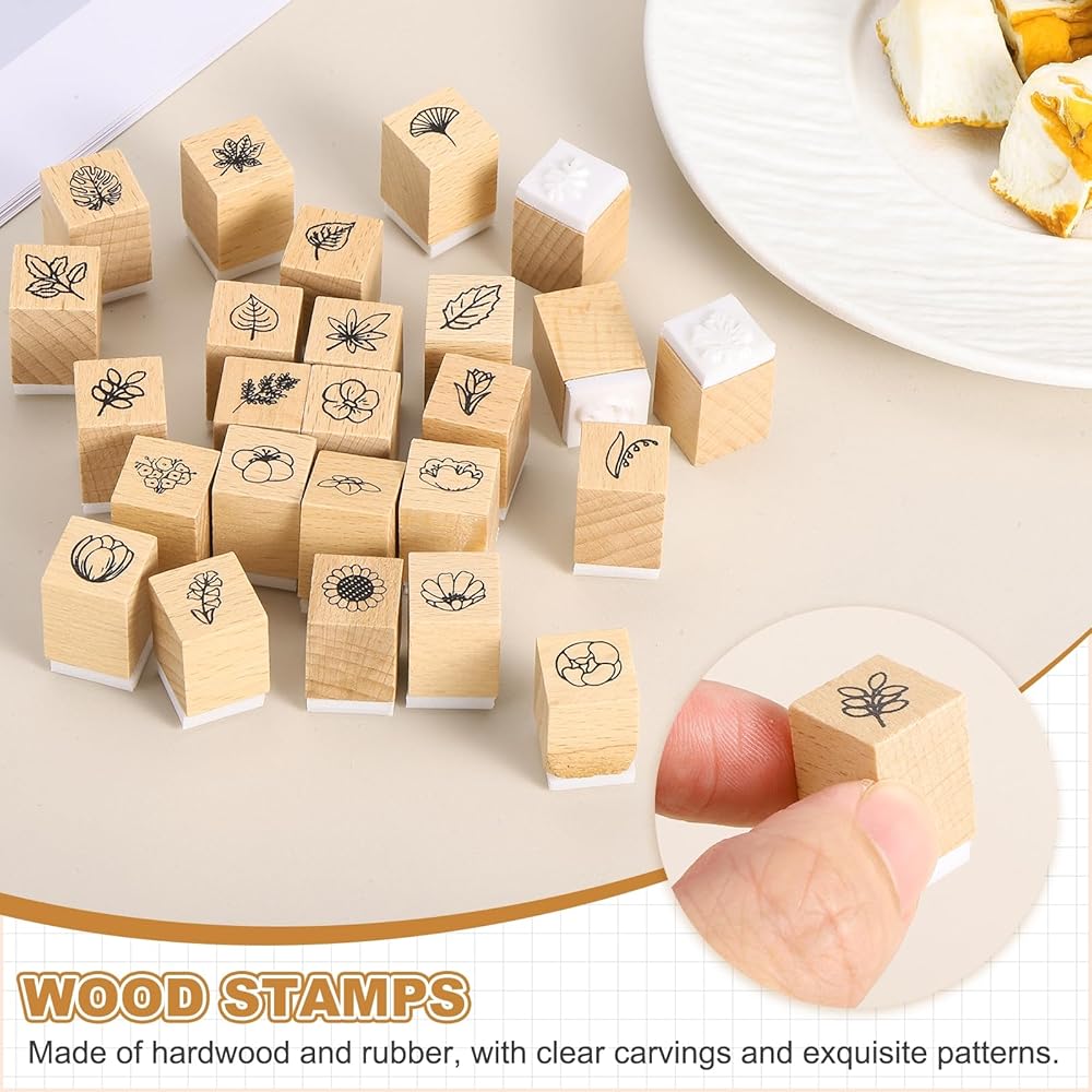 The vintage wood stamps crafted with durable wooden handles and deep-engraved rubber stamps for clear, professional impression every time. With their exquisite patterns, simple designs and unique styles, each stamp is stylish and great for mix and match patterns, create personalized works, or a good choice as a unique decoration.