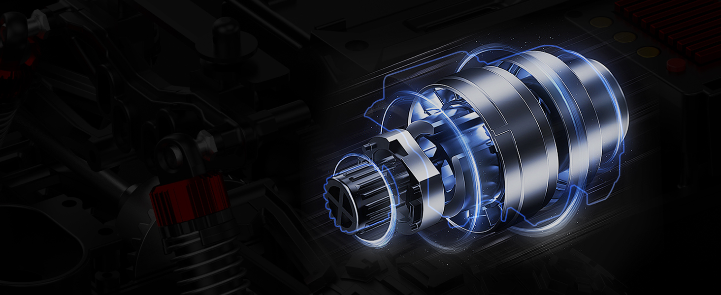 【سيارة RC احترافية بدون فرش رباعية الدفع للتضاريس القاسية: تم تصميمها بمحرك قوي بدون فرش عالي عزم الدوران بأربعة أقطاب، ونظام دفع فولاذي متين، وتروس تفاضلية معدنية، ومؤازرة ثلاثية الأسلاك مقاومة للحرارة. تضمن أعمدة الإدارة التلسكوبية العالمية والمحامل الكروية عالية السرعة أداءً استثنائيًا عبر مختلف التضاريس.