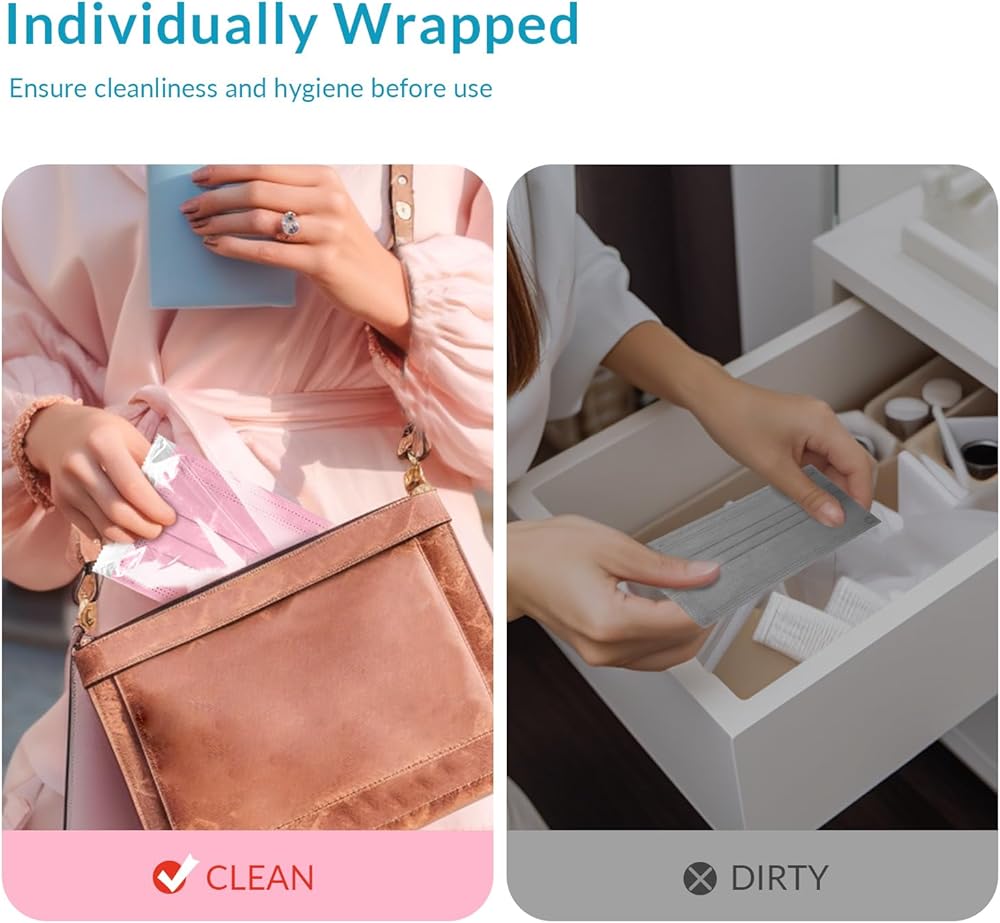 100 عبوة: لتلبية احتياجاتك الدائمة، تأتي أقنعةنا متعددة الألوان في عبوات مكونة من 100 قطعة، لذا فإن قناع الوجه المريح وخفيف الوزن في متناول اليد دائمًا. من خلال خيارات الحزم المتعددة الفعالة من حيث التكلفة، استمتع براحة الحماية المستمرة وغير المنقطعة التي لا تتطلب منك التضحية بالراحة أو السهولة.
