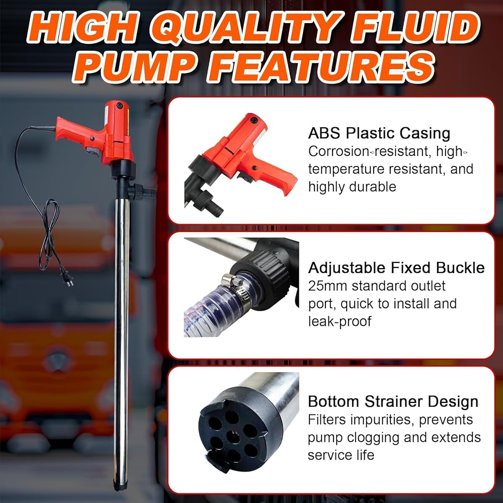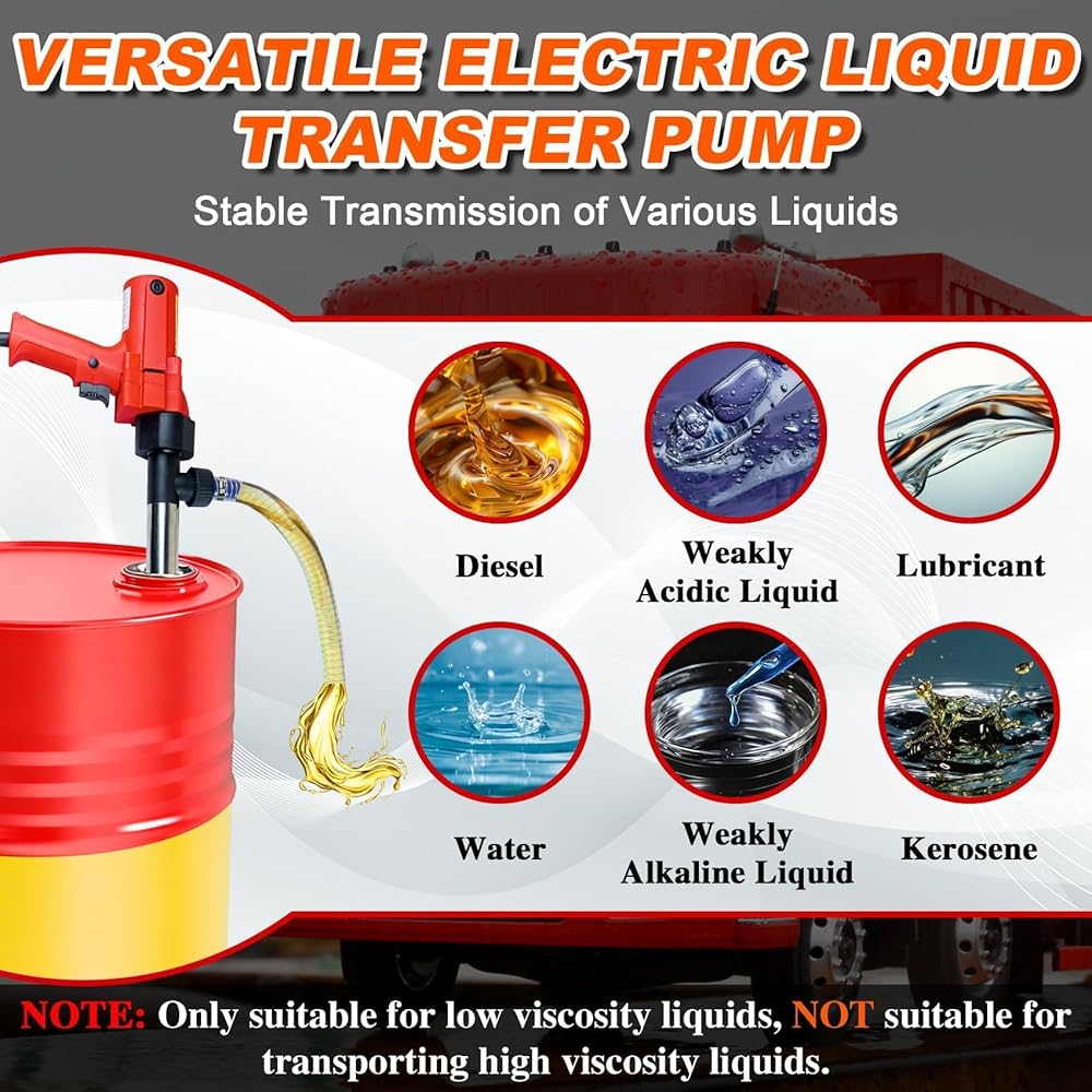 احتياطات السلامة: مضخة نقل الوقود الكهربائية هذه بسعة 55 جالون مناسبة فقط للسوائل منخفضة اللزوجة وليست مناسبة لنقل السوائل القابلة للاشتعال/المتفجرة أو عالية اللزوجة. يرجى اتباع تعليمات التشغيل لضمان التشغيل الآمن والموثوق.