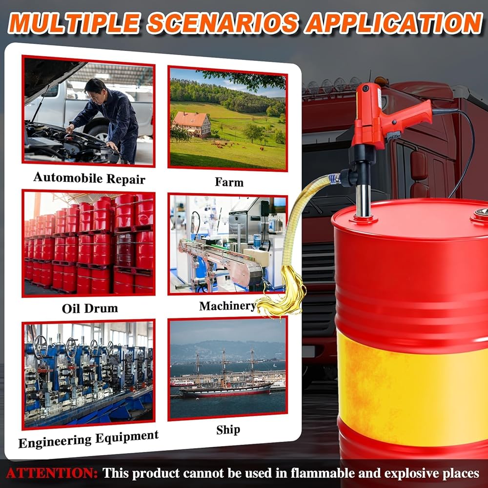 【متوافقة مع سوائل متعددة】: يمكن لمضخة الوقود 2480 واط هذه نقل السوائل المختلفة بشكل ثابت، بما في ذلك الماء والكيروسين والديزل ومواد التشحيم وزيت الطعام وما إلى ذلك، مما يكسر قيود نقل السائل الفردي. تعتبر مضخة برميل الزيت الكهربائية مناسبة جدًا لسيناريوهات مثل ورش السيارات، والمعدات الصناعية، وأنظمة تخزين السوائل الزراعية، وخزانات تخزين الزيت المنزلية، مما يلبي بسهولة احتياجات المستخدمين المختلفين لنقل السوائل المختلفة.